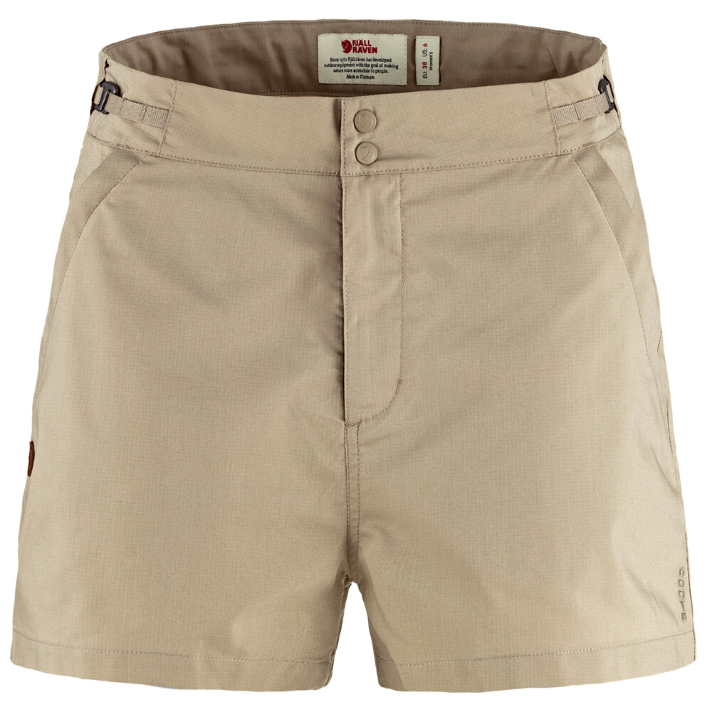 Short de trekking pour femme de Fjällräven, fabriqué dans une matière durable. La coupe cintrée et la ceinture arrière plus haute vous permettront de rester à l'aise lors de chaque randonnée.