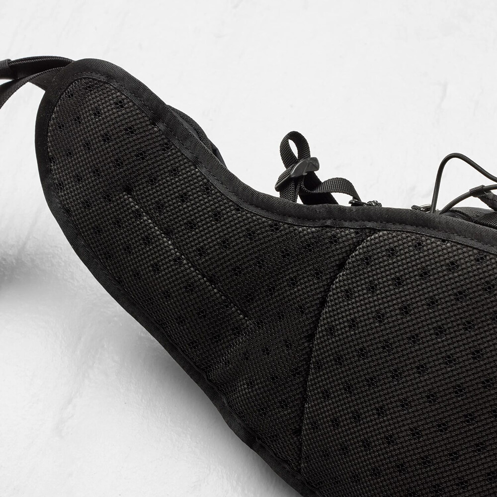 Deux poches extensibles accueillent des bouteilles d'eau de taille moyenne, les poches de hanche des barres énergétiques et le compartiment principal votre téléphone portable, vos clés et vos en-cas. Et une veste imperméable ou un coupe-vent ? Il suffit de l'accrocher sous le cordon élastique à l'avant.