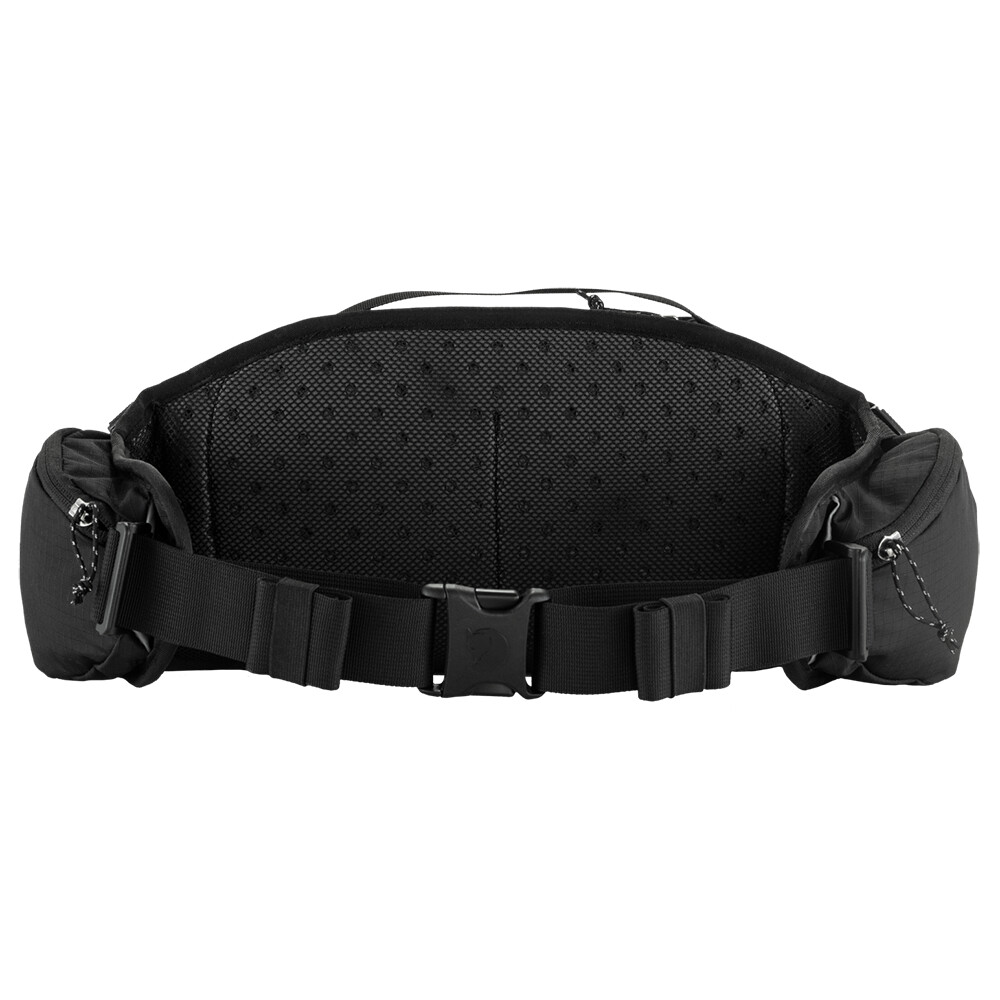Sac à reins Fjällräven en nylon résistant et imperméable de 4 litres. Organisateur interne et pochette intérieure en filet. Deux sangles à cordon de serrage et taille réglable.