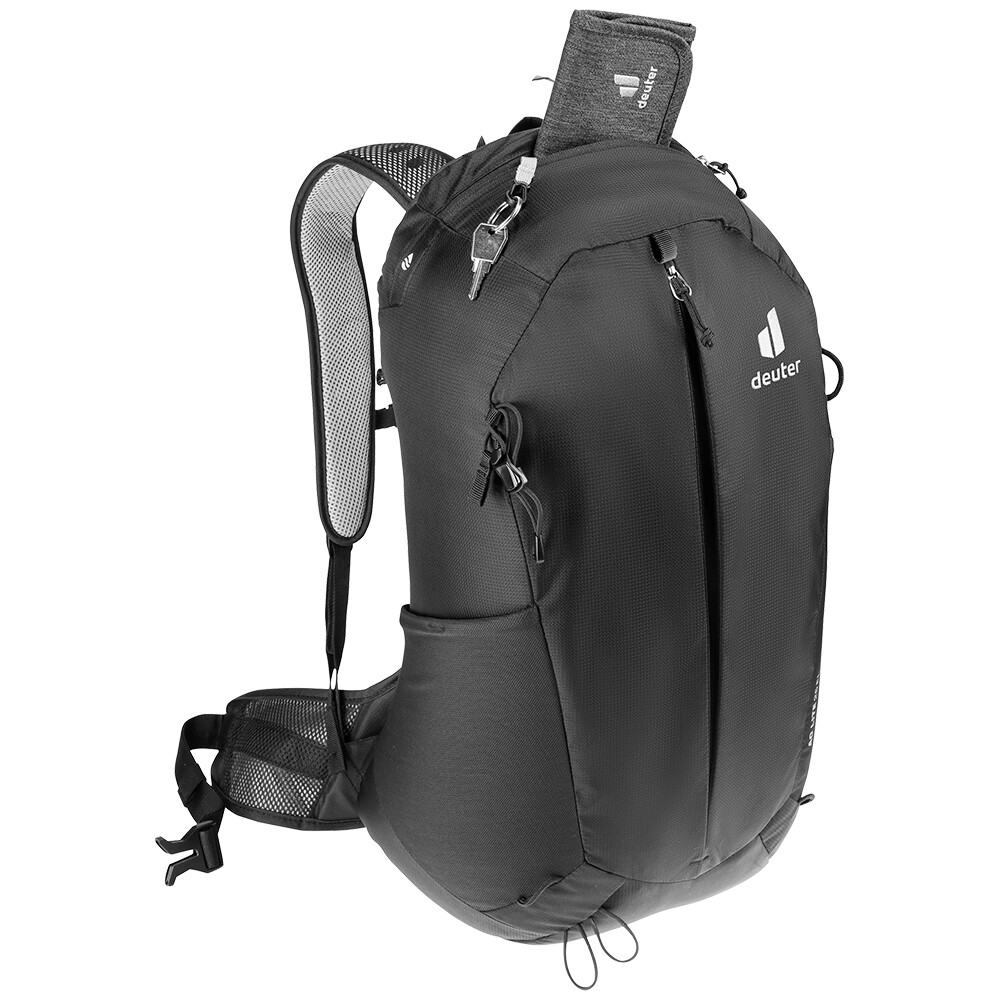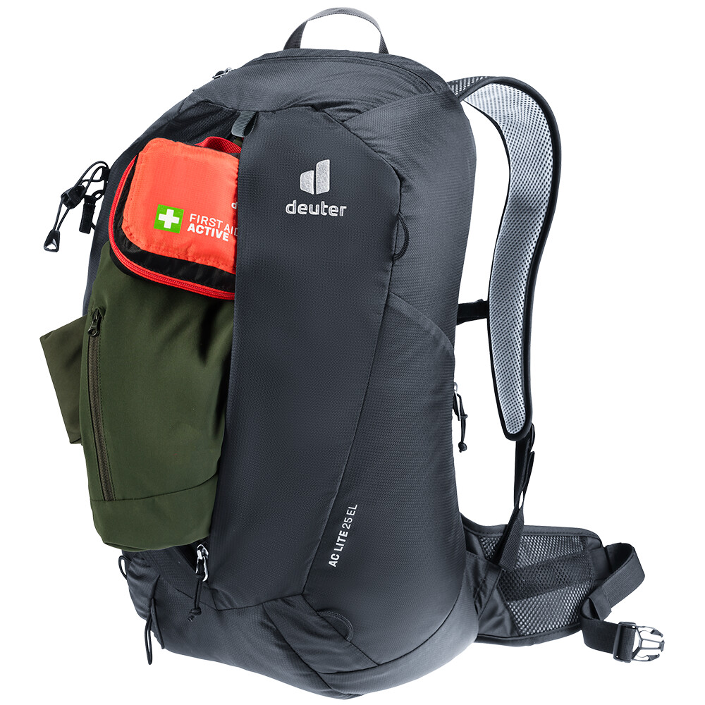 Le compartiment principal spacieux de l'AC Lite 25 EL permet de ranger facilement tous les objets essentiels. En plus de la poche centrale, il dispose d'une poche pratique pour votre téléphone portable ou d'autres objets de valeur et électroniques. Sur les côtés, des poches en filet sont prévues pour les bouteilles d' eau, tandis que des boucles permettent d'attacher un casque, des bâtons de trekking ou une veste. Sur la sangle d'épaule, vous trouverez une fixation pratique pour les lunettes. Ces détails bien pensés font de l'AC Lite 25 EL le compagnon idéal pour toutes sortes de randonnées.