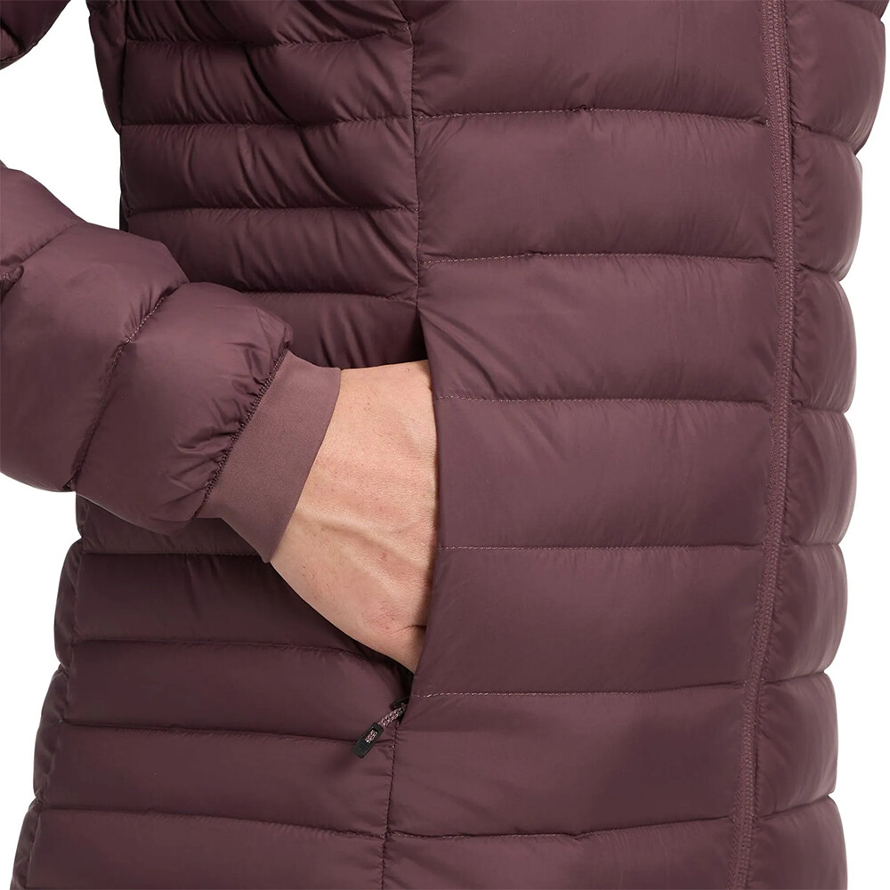 Veste en duvet pour femme en tissu ripstop ultraléger. Protège contre l'humidité et l'eau grâce à une technologie spéciale et un traitement DWR. L'intérieur est garni de duvet d'oie de première qualité. Une couche d'appoint pour la montagne.