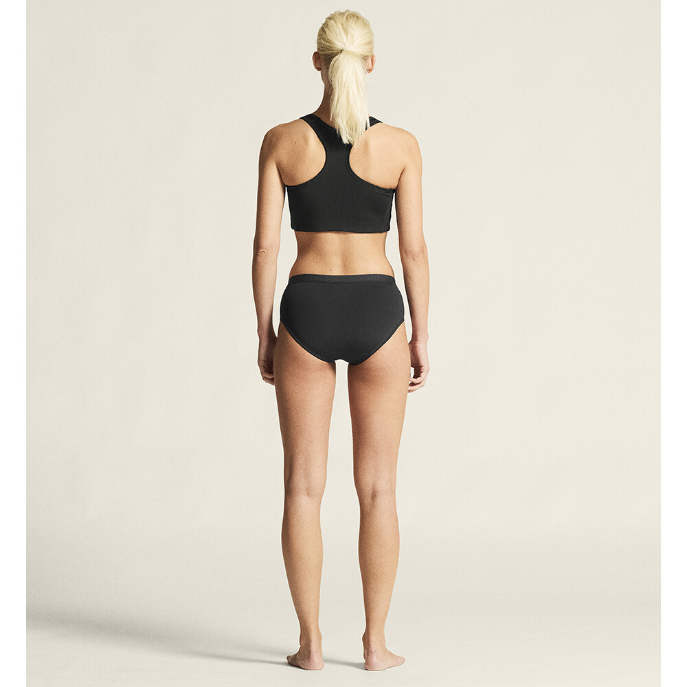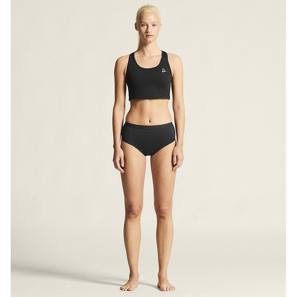 Culotte de sport pour femme Active Hipster de l'entreprise suédoise Craft en matière synthétique. Elle est légère, flexible, évacue l'excès d'humidité vers la couche suivante et sèche rapidement.