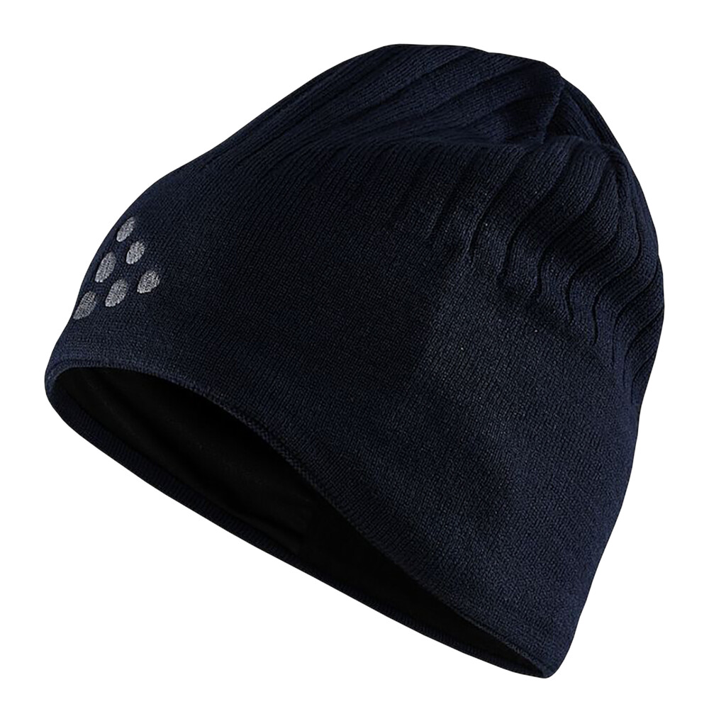 Le bonnet ADV Windblock Knit de l'entreprise suédoise Craft. Le bonnet est doté d'une membrane coupe-vent à l'avant pour protéger la tête du froid. L'intérieur est composé d'une matière polaire douce et agréable.