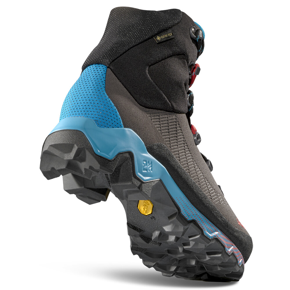 Chaussures de randonnée modernes pour femme avec tige en textile léger et membrane Gore-Tex®. Dotée d'une semelle Vibram® avec la technologie révolutionnaire Double Heell™, elle vous aidera à ralentir votre mouvement lors des descentes plus difficiles.
