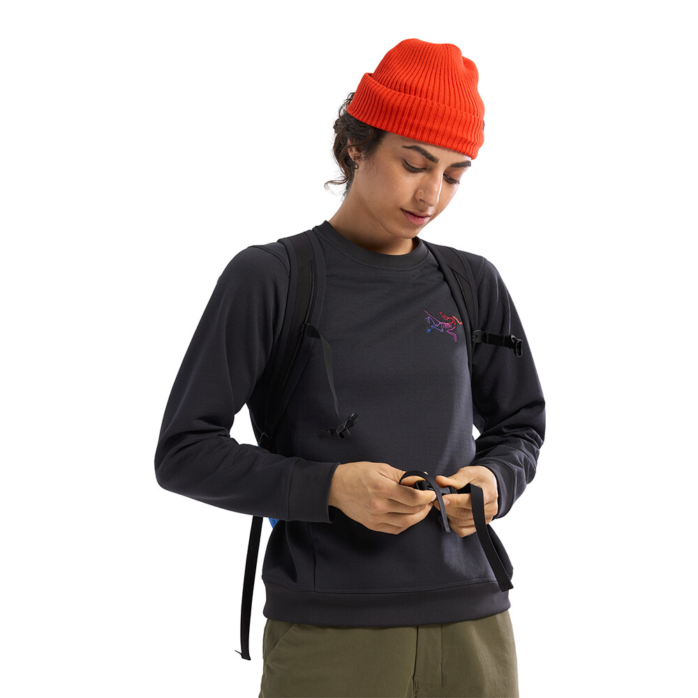 Sweat à capuche Aestas Crew en polartec pour femme de la société canadienne Arc'teryx, fabriqué à partir de matériaux très durables et recyclés.