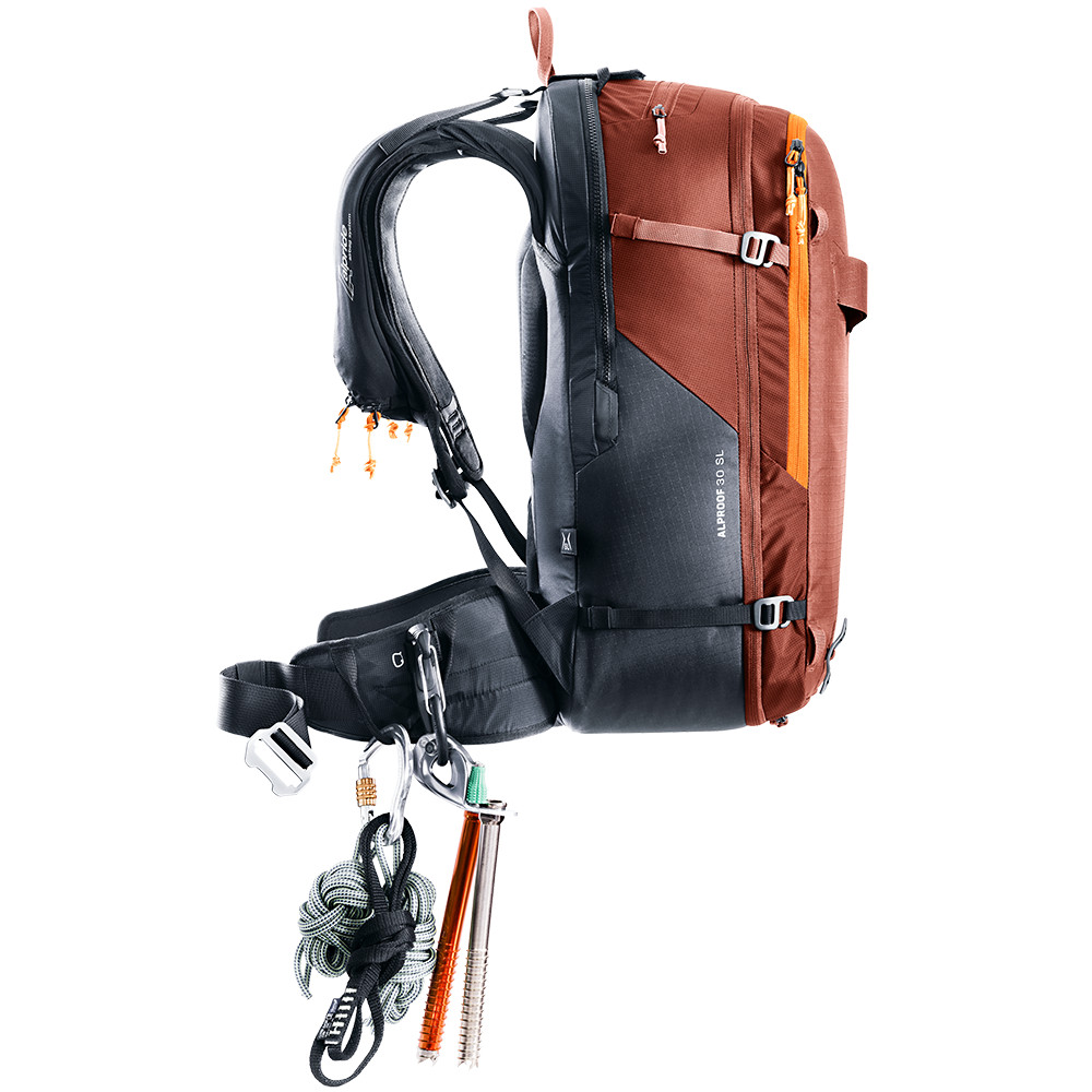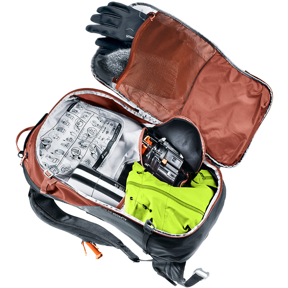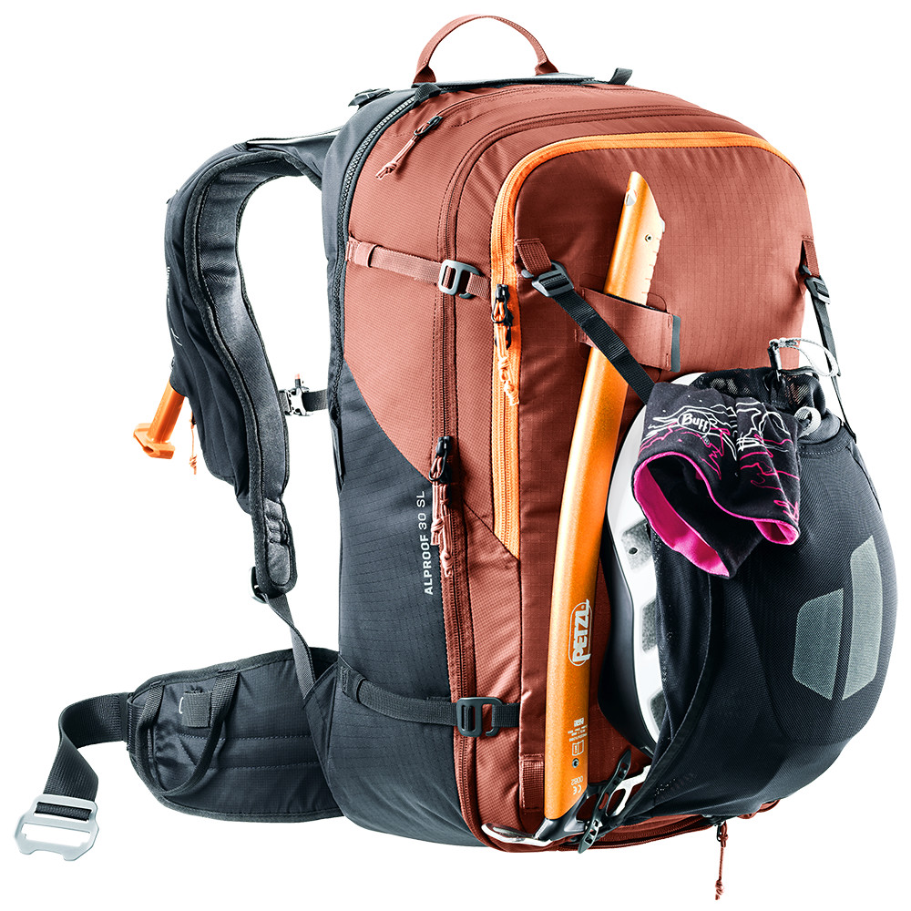 Le sac à dos Alproof 30SL est suffisamment grand pour contenir l'équipement d'une journée de ski de randonnée en montagne. Vous pouvez attacher des skis ou un snowboard au sac, il a une poche rembourrée pour les lunettes et un compartiment spécial pour le matériel d'avalanche (pelle et sonde). Le système dorsal est adapté à la morphologie féminine.