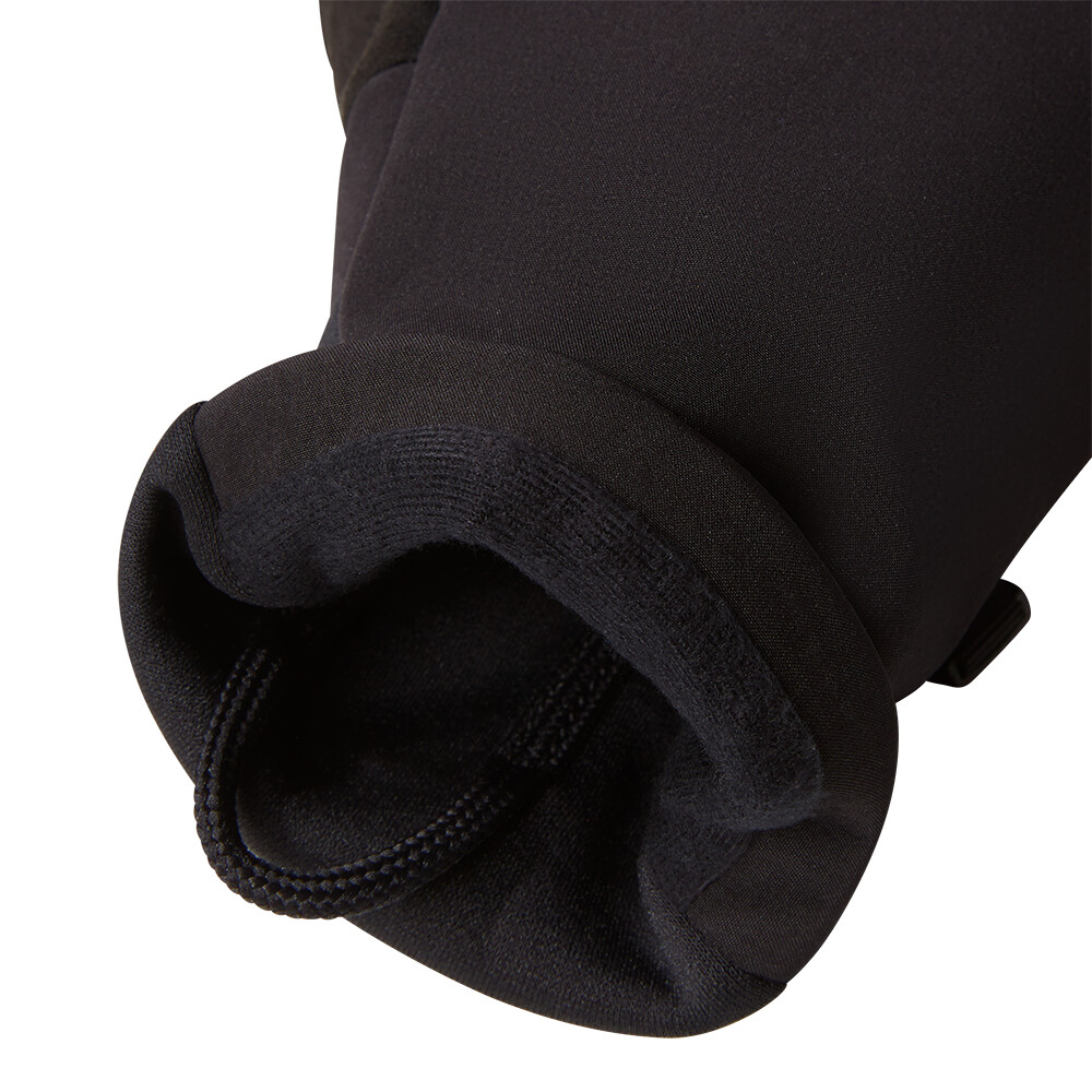 La finition Non-PFC DWR repousse l'eau et garde les mains sèches, tandis que la softshell douce avec doublure en polaire assure confort et chaleur. Doublure polaire confortable et jersey brossé pour une sensation de douceur. Les matériaux avec un pourcentage élevé de polyester recyclé préservent l'environnement sans sacrifier la performance. La technologie Etip™ permet d'utiliser l'écran tactile sans retirer les gants. L'impression en silicone sur la paume assure une prise en main sûre.