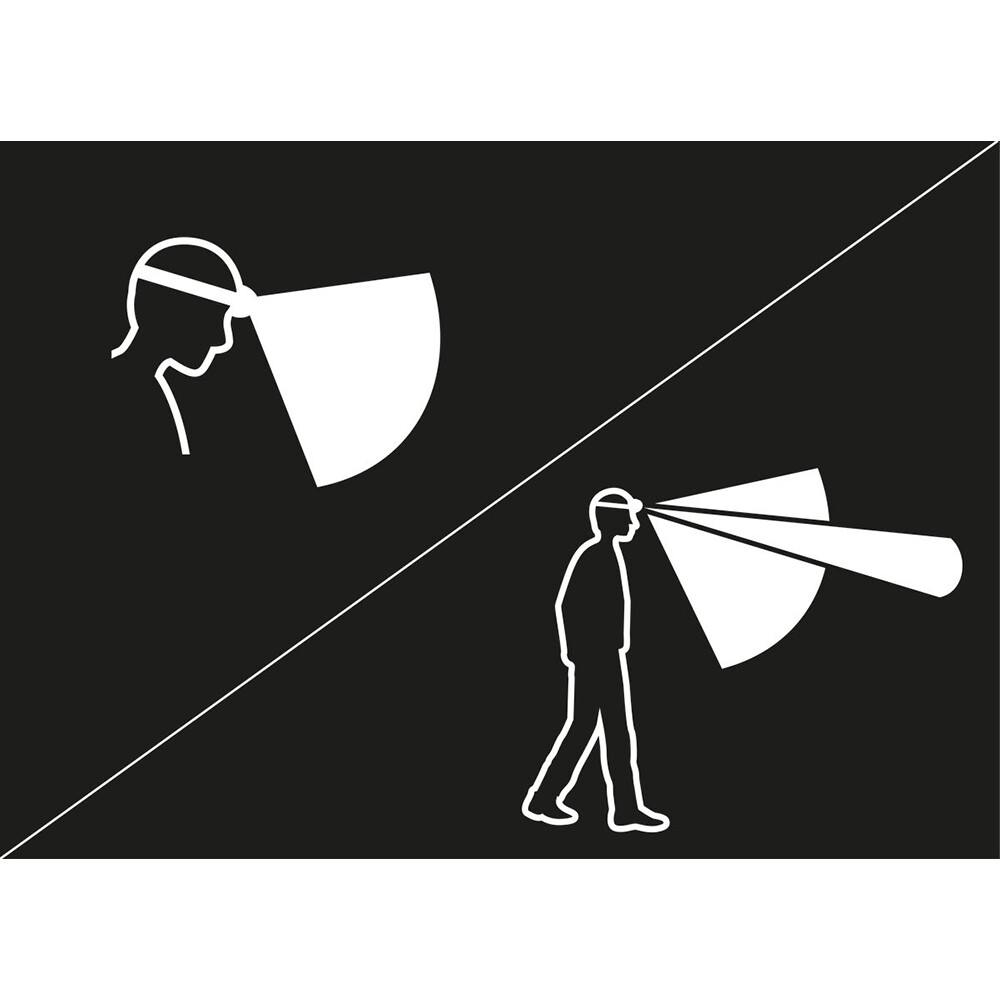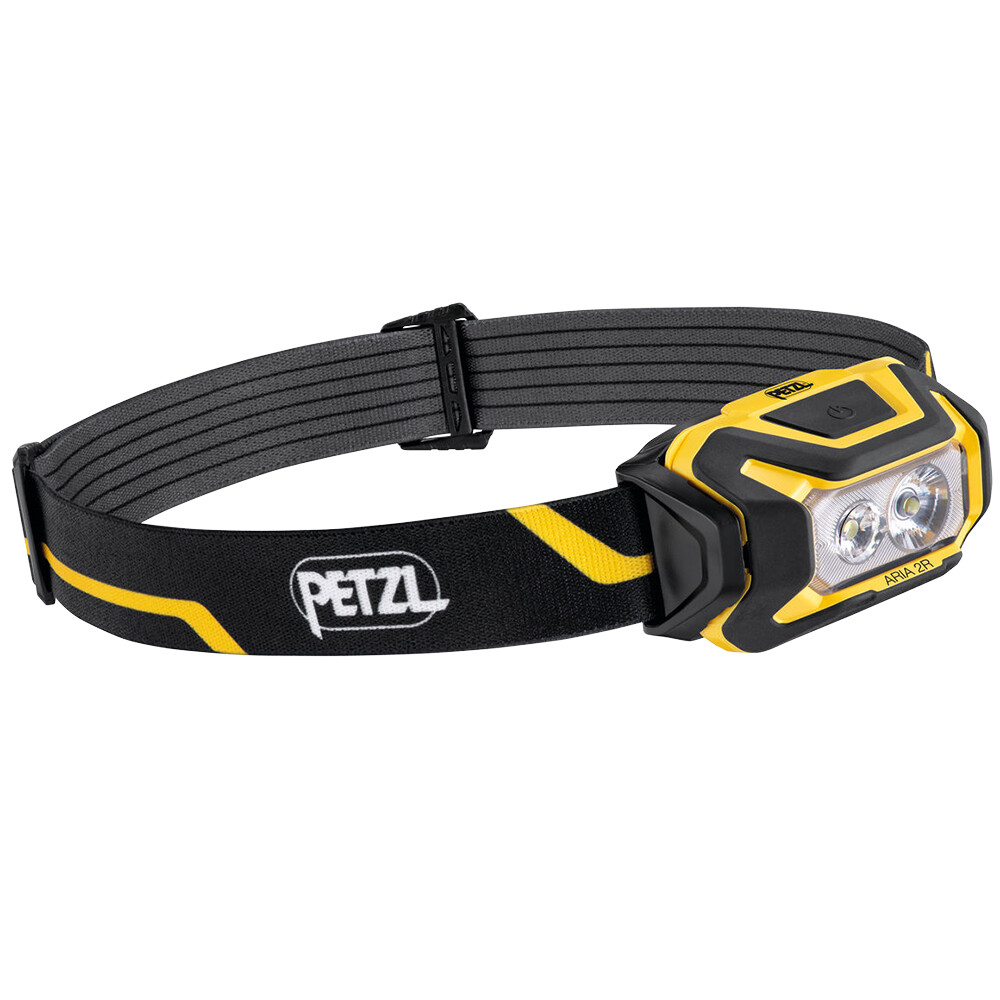 Lampe frontale de travail puissante, résistante à la poussière, à l'eau et aux chocs. Compatible avec la cellule de charge Petzl Core. Comprend deux LED pour une lumière uniforme et diffuse et trois modes de couleur - rouge, vert, bleu.