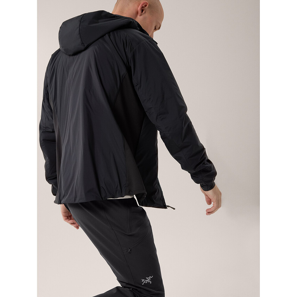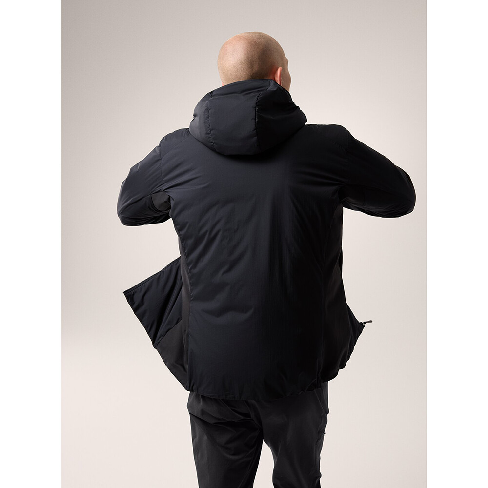 Veste isolée avec capuche pour homme d'Arc'teryx. Le rembourrage synthétique chaud est complété par un matériau polaire extensible sur les côtés pour favoriser une meilleure respirabilité.