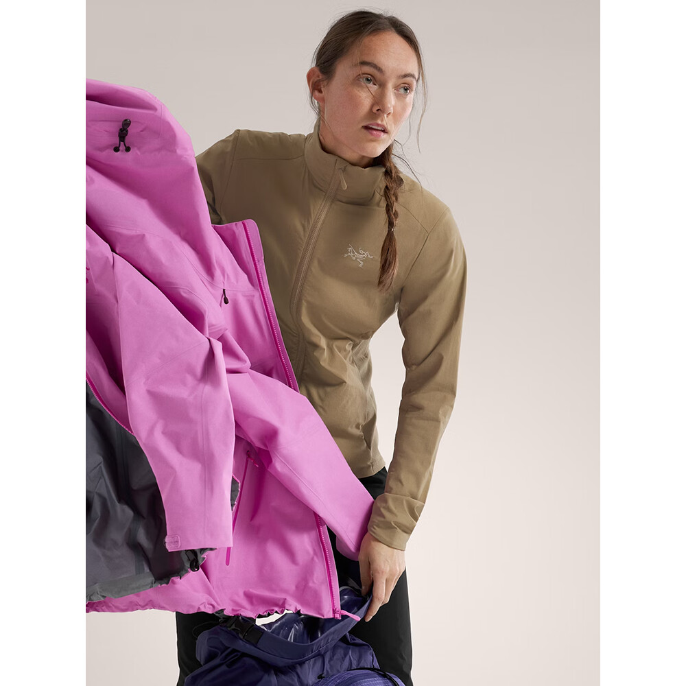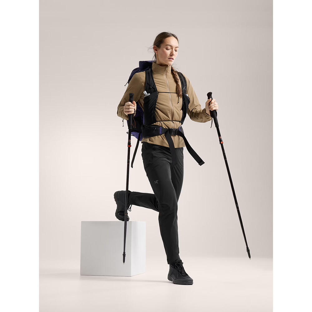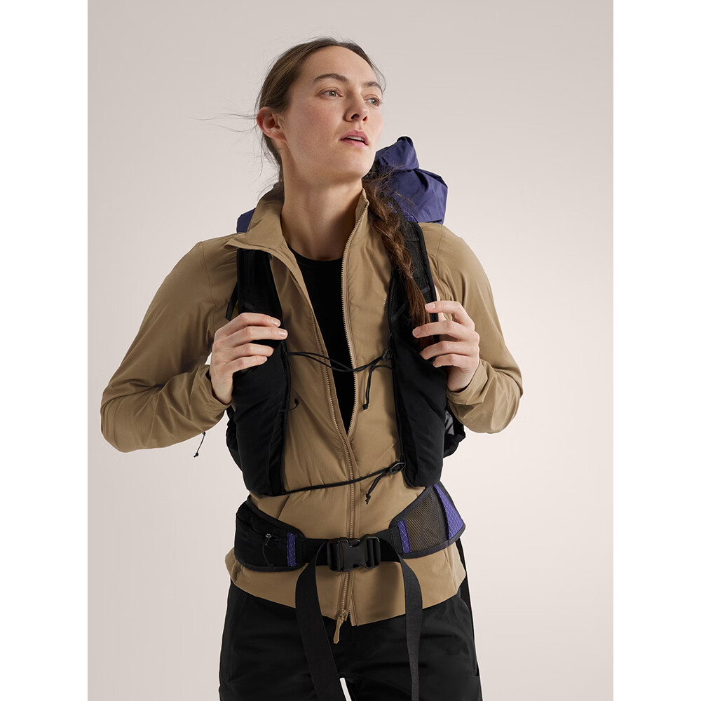 Veste isolée avec capuche pour femme d'Arc'teryx. Le rembourrage synthétique chaud est complété par une matière polaire extensible sur les côtés pour favoriser une meilleure respirabilité.