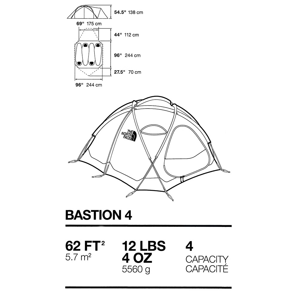 La tente toutes saisons Bastion 4 de la Summit Series™ de The North Face est la tente idéale pour les randonnées en haute altitude et les expéditions extrêmes. Elle est fabriquée en nylon durable, et l'auvent est en tissu ripstop avec un traitement tropical déperlant et une doublure. Les arceaux et les piquets DAC sont très robustes pour leur poids, et la conception elle-même permet de faire face aux vents les plus violents. La marque North Face n'a pas oublié les boucles de suspension pour les combinaisons, les entrées doubles et les boucles de fermeture éclair à code couleur qui brillent dans l'obscurité pour que vous puissiez retrouver votre chemin après une longue journée sur le mur.