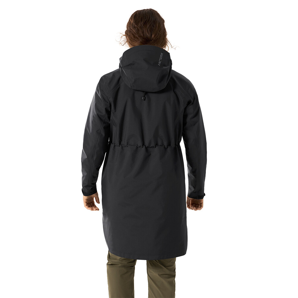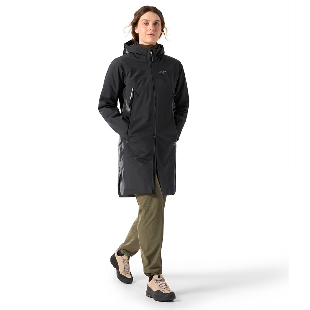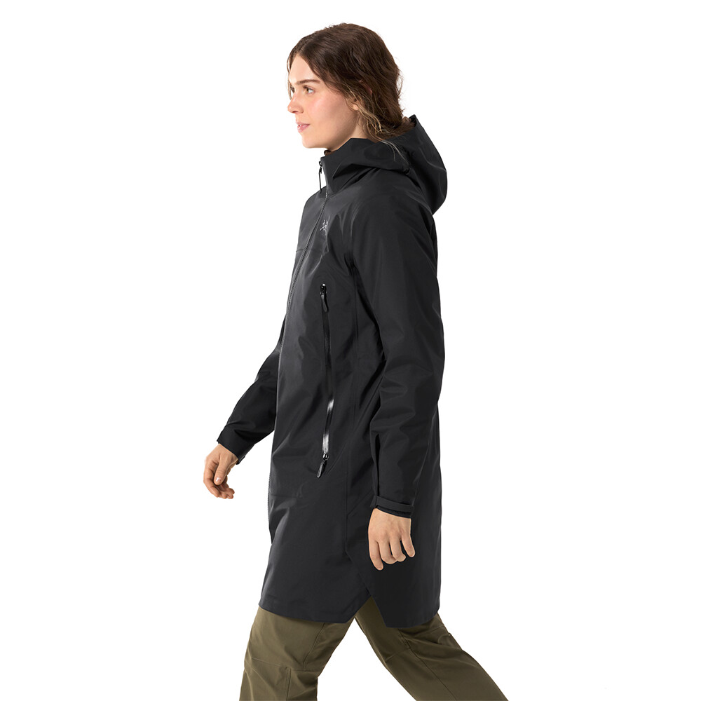 Le Gore-tex 3L coupe-vent et imperméable protège des intempéries. La capuche réglable avec col ergonomique s'adapte parfaitement et protège. La fermeture à glissière double sens déperlante permet de s'habiller facilement et de réguler la température. Les poches spacieuses avec fermetures à glissière bidirectionnelles sont appréciées pour leur côté pratique. Le manteau peut être cintré à la taille pour accentuer les formes féminines.