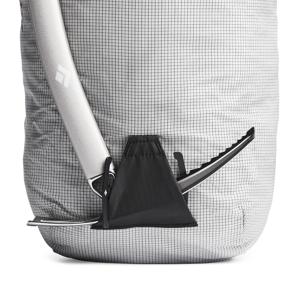 Sac à dos d'alpinisme minimaliste de la collection haut de gamme Eiger Extreme, pesant seulement 380 g. Il est doté d'un couvercle à boucle enroulable, d'un fond renforcé et de sangles pour le transport des skis, des cordes, des bâtons, des piolets et d'autres équipements.
