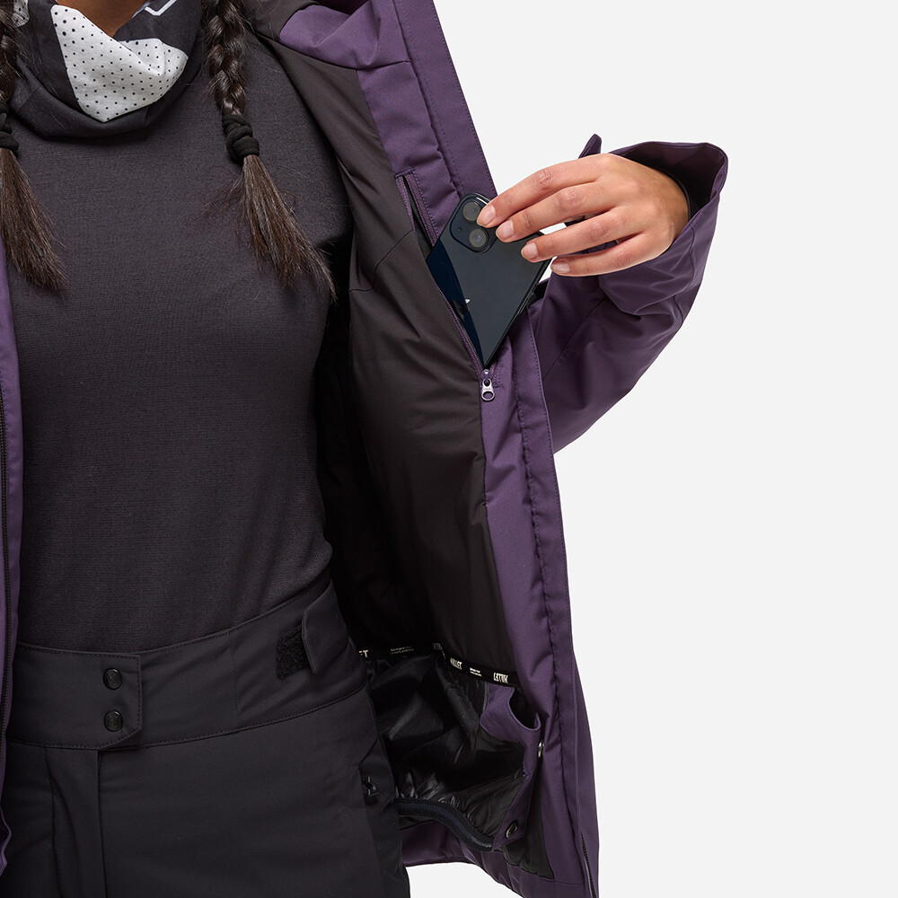 Pour que vous soyez le plus à l'aise possible, la veste a été doublée d'une doublure extensible, avec un devant high loft pour une isolation supplémentaire. A l'intérieur, on trouve une ceinture pare-neige avec une bande antidérapante pour éviter que la neige n'arrive là où elle ne devrait pas quand, par exemple, un arc se passe mal. Les extrémités des manches sont réglables et dotées d'une manchette intérieure très confortable.