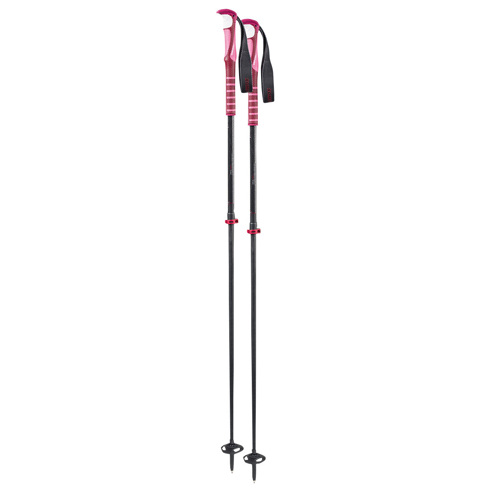 Bâtons en carbone en deux parties pour le freeride et le skialp. Ils ont un poids réduit de seulement 502g par paire, une poignée en matériau FATSO hautement antidérapant et des coupelles à neige qui s'adaptent aux inclinaisons des pistes jusqu'à 28°.