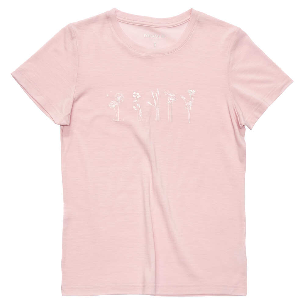Tee-shirt mérinos pour femme avec motifs floraux Tee-shirt classique à fleurs de la société norvégienne Devold. Matière agréable et coupe "Loose" confortable.