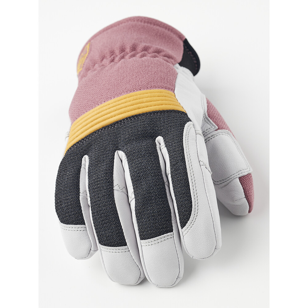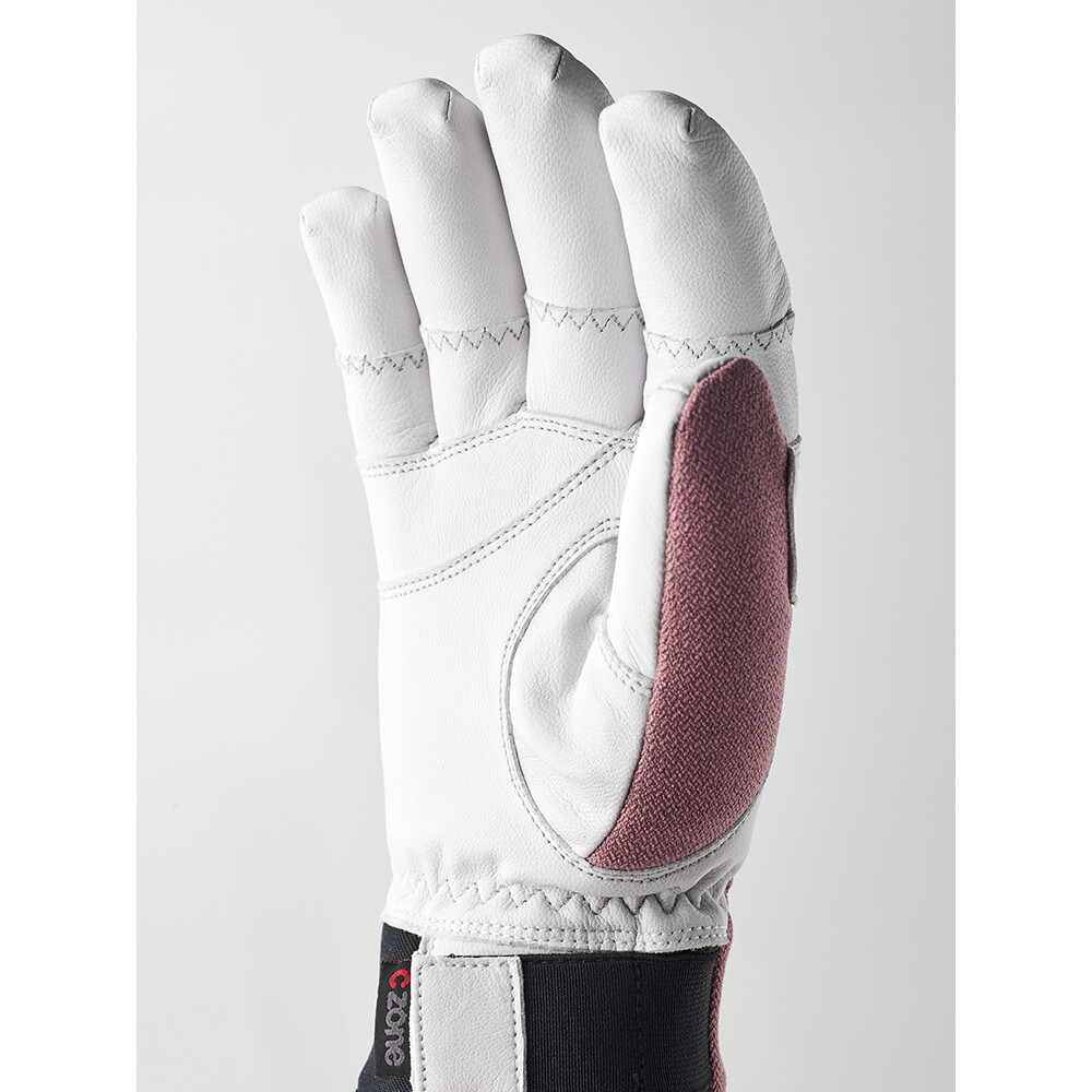 Les gants sont faits de tissu Hestra coupe-vent, imperméable et respirant et de cuir de vache. La paume en cuir augmente la durabilité des gants et améliore l'adhérence. La doublure en polyester brossé procure une sensation de chaleur confortable. Le cordon de serrage sur la manchette permet d'adapter les gants à vos besoins. La sangle élastique au poignet assure un ajustement confortable. Les œillets sur la manchette permettent d'attacher les menottes ou de relier les gants.
