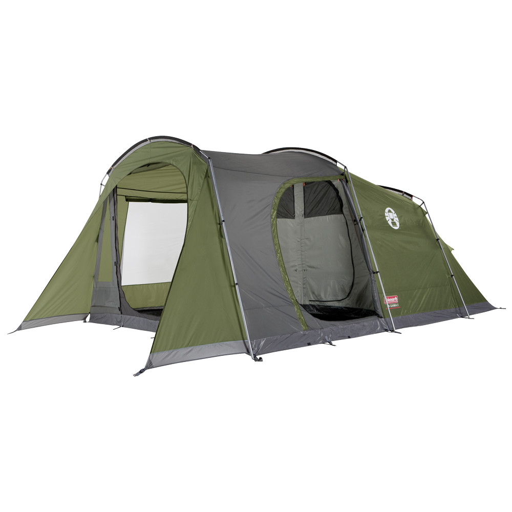 Tente pour quatre personnes. Elle dispose de deux chambres séparées et de deux entrées qui peuvent être ouvertes comme un auvent. La technologie d'occultation (chambre à coucher occultante) empêche la lumière du jour de pénétrer et permet un sommeil plus long.