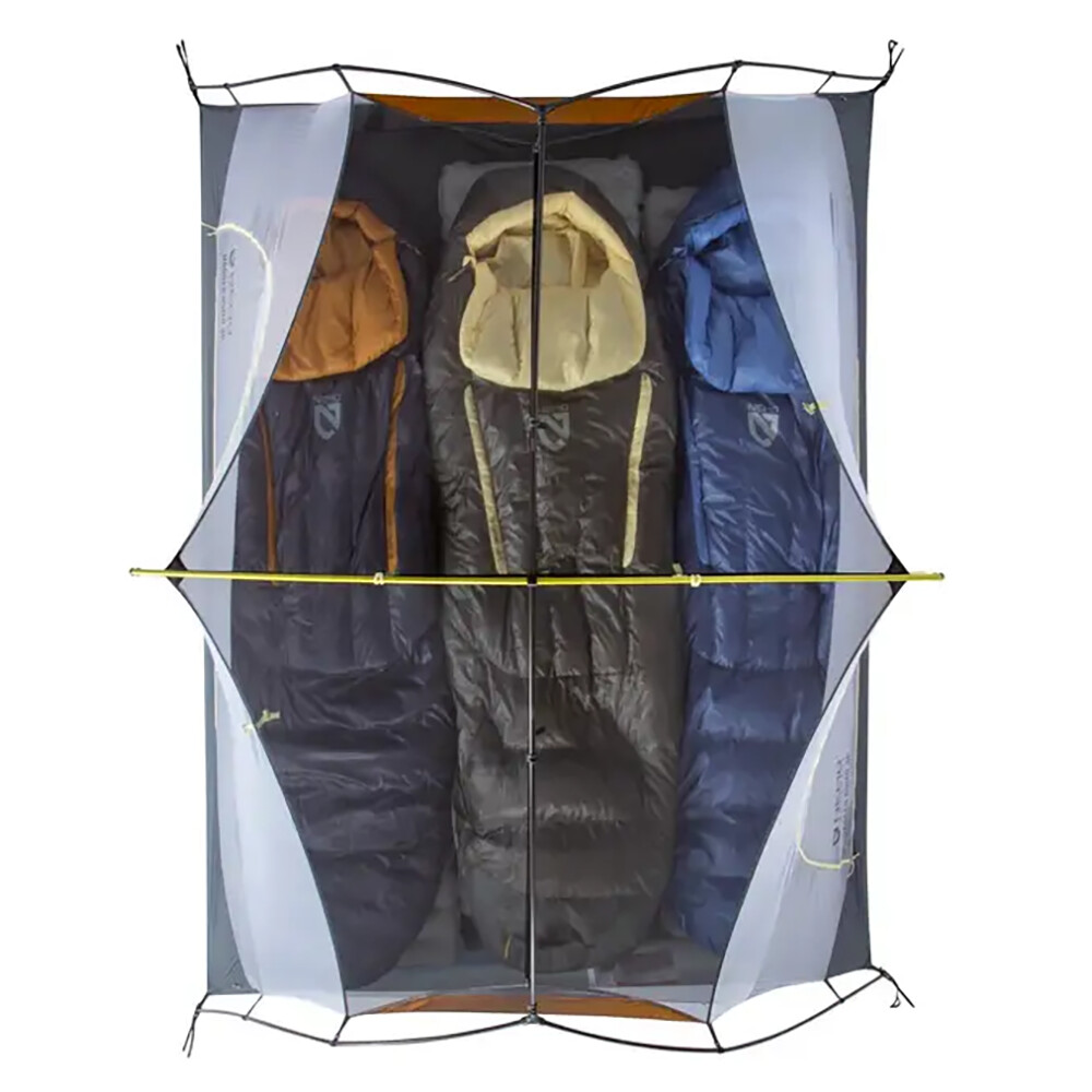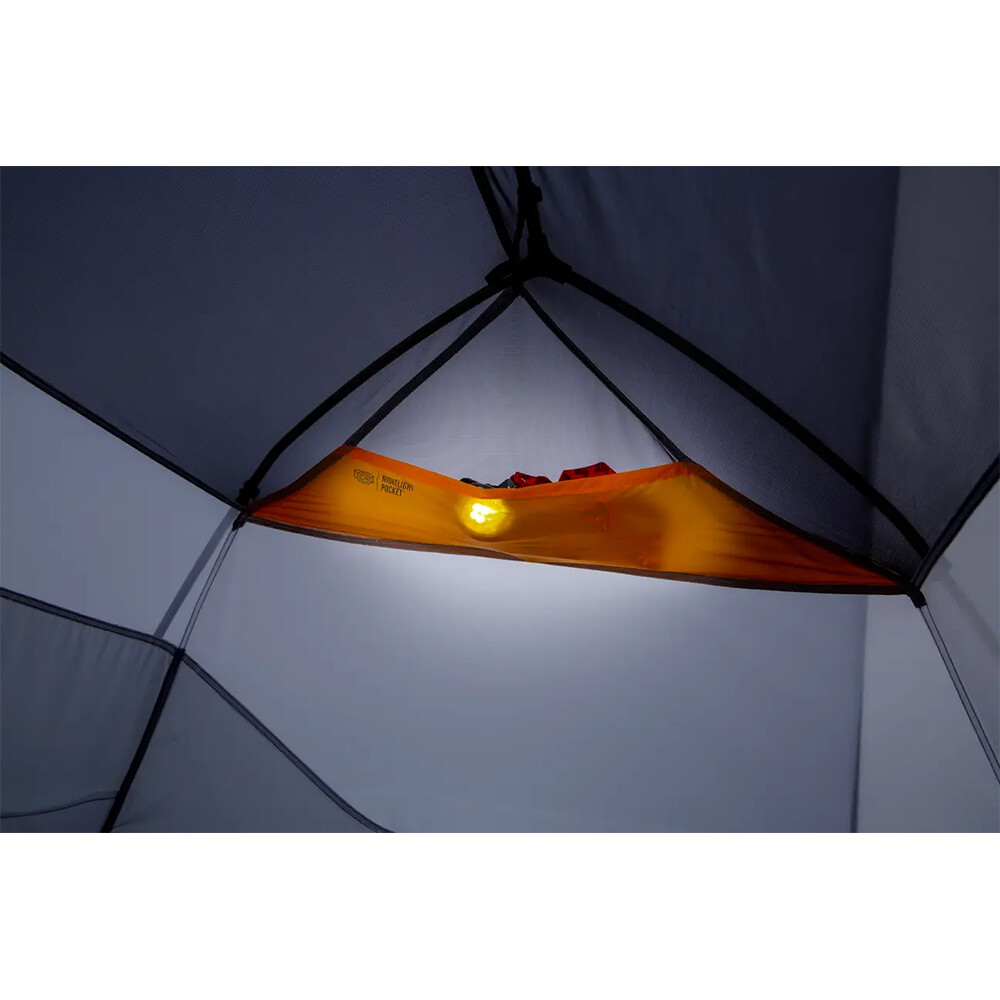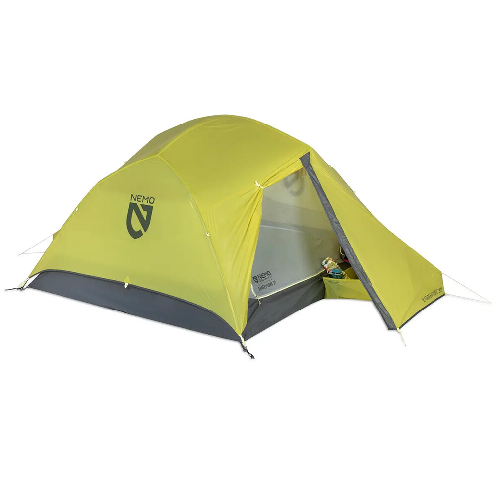La tente de randonnée Nemo est autonome, avec deux entrées et un poids très léger de 1750 g seulement. Vous pouvez utiliser le vestibule spacieux pour ranger les sacs à dos et, grâce à une section de plancher supplémentaire, vous pouvez créer un espace séparé propre et sec dans le vestibule (pour ranger les bottes, les casques d'escalade, etc.). Les entrées de la tente intérieure sont en filet opaque, ce qui offre une grande intimité et sert également de moustiquaire. De nombreuses poches permettent de ranger de petits objets, y compris un compartiment spécial pour une lampe frontale qui diffuse la lumière de manière homogène à l'intérieur de la tente.