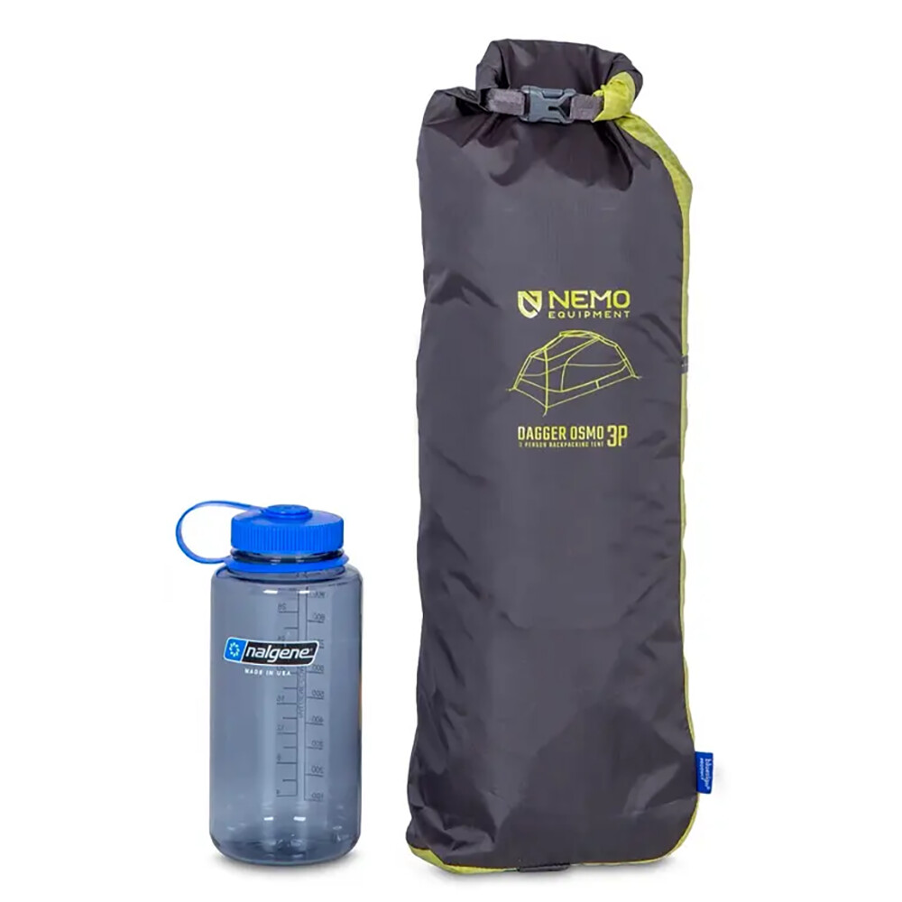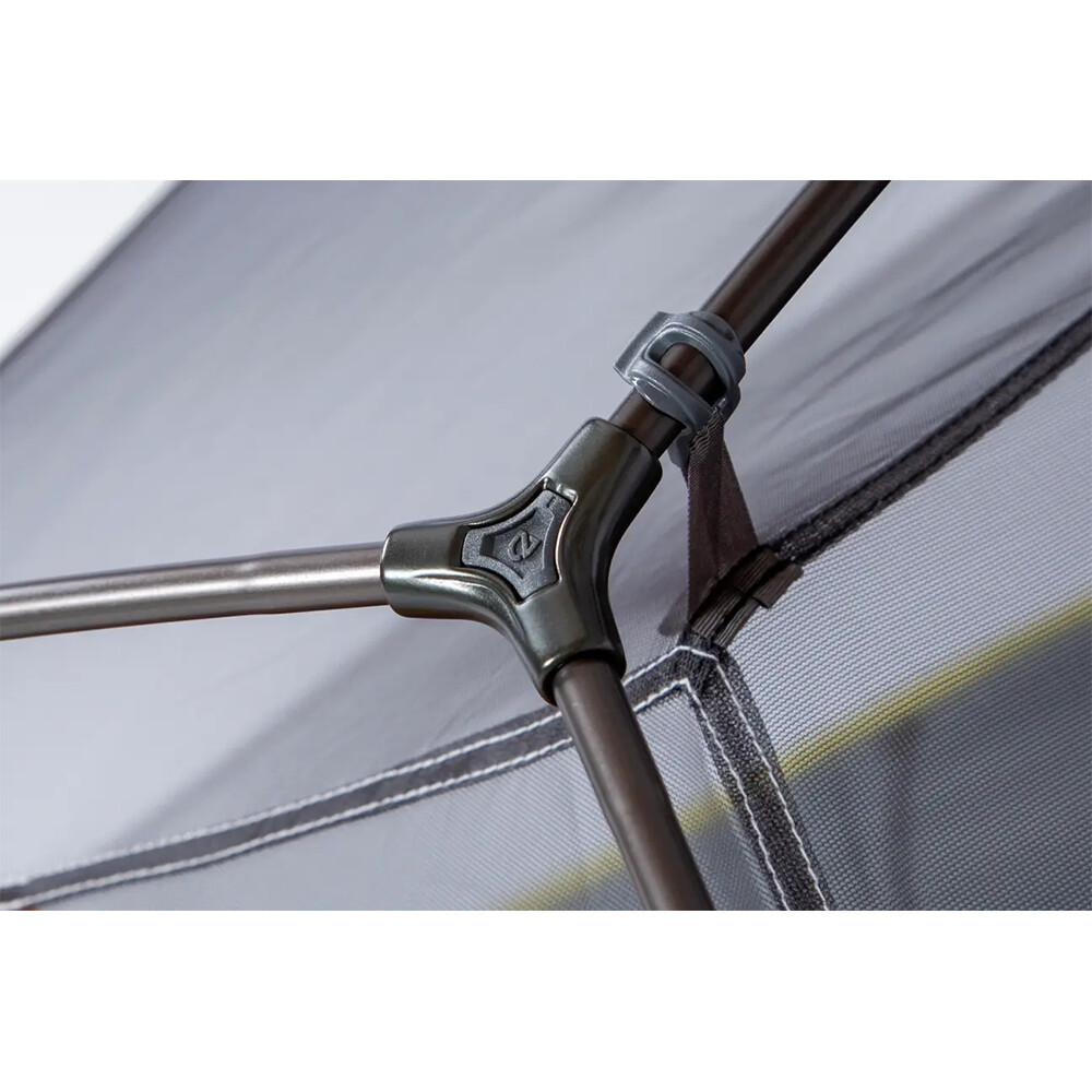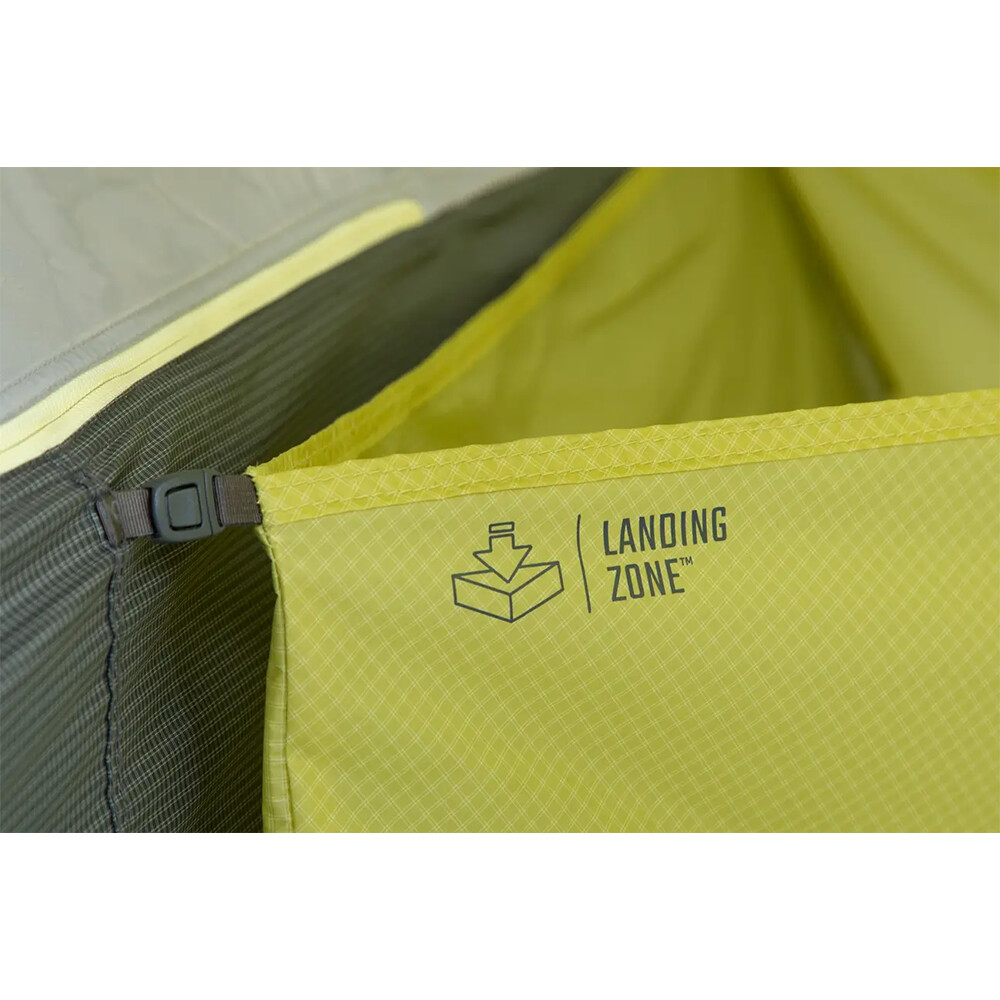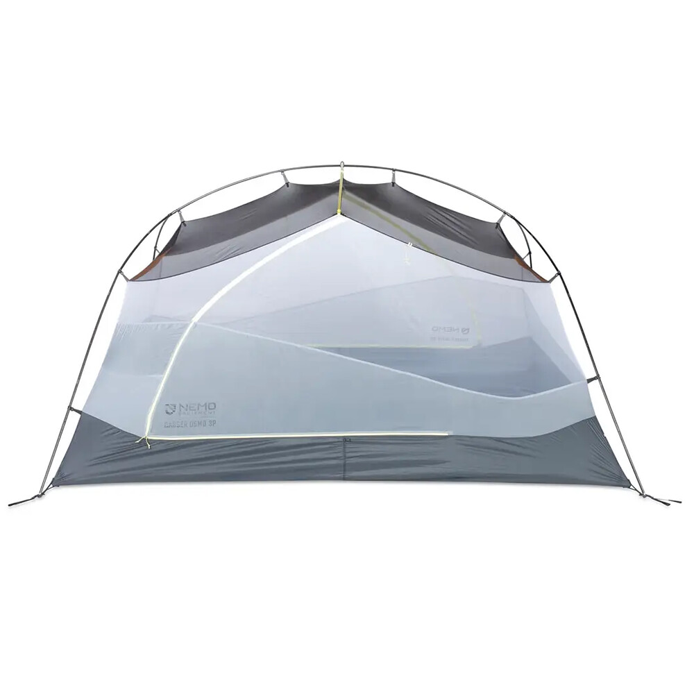 Le tissu OSMO™ est directement développé par Nemo. C'est un mélange unique de fibres de nylon et de polyester recyclées qui est plus résistant, imperméabilise plus longtemps et s'étire trois fois moins lorsqu'il est mouillé (par rapport à un tropic 100 % nylon). Cela l'empêche de s'affaisser et de se mouiller à l'intérieur de la tente, et il sèche également plus rapidement. En outre, il est fabriqué sans produits chimiques couramment utilisés (PFC et retardateurs de flamme) et est certifié bluesign®.