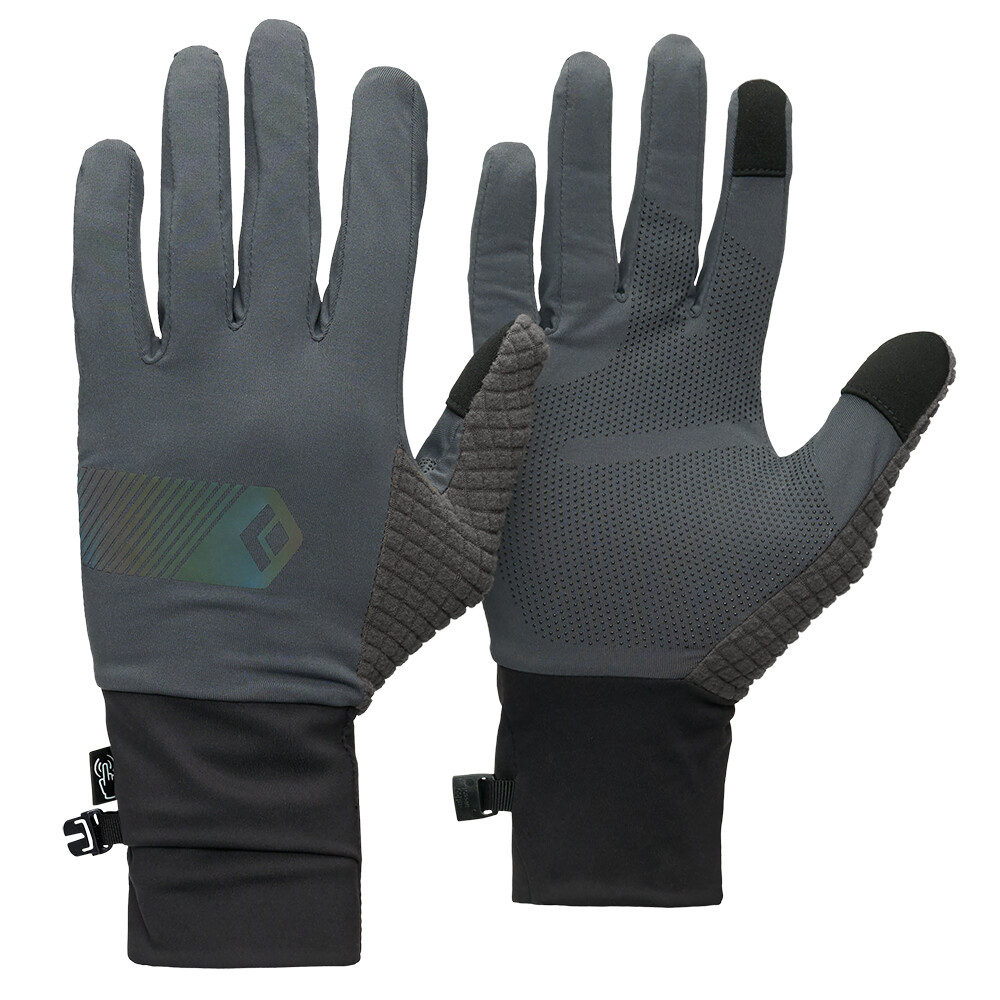 Gants Deploy en molleton léger et respirant de la société américaine Black Diamond. Conçus pour la course à pied, le cyclisme et la randonnée. Ces gants sont dotés d'un index et d'un pouce compatibles avec les écrans tactiles et d'un trou de montre au poignet. La section du pouce est dotée d'une belle grille en polaire pour s'essuyer le nez. La paume est recouverte d'une impression en silicone pour une plus grande durabilité et une meilleure adhérence, par exemple avec des bâtons.