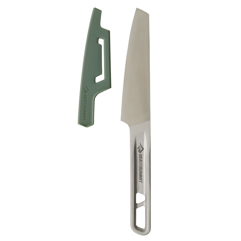 Le couteau à trancher de Sea To Summit est parfait pour votre cuisine de camping. Il est fabriqué en acier inoxydable et vous servira à trancher et éplucher des fruits, des légumes, de la viande et d'autres aliments. Il comprend un couvre-lame en silicone pour que vous puissiez le ranger dans votre sac à dos ou votre sac de voyage sans souci.