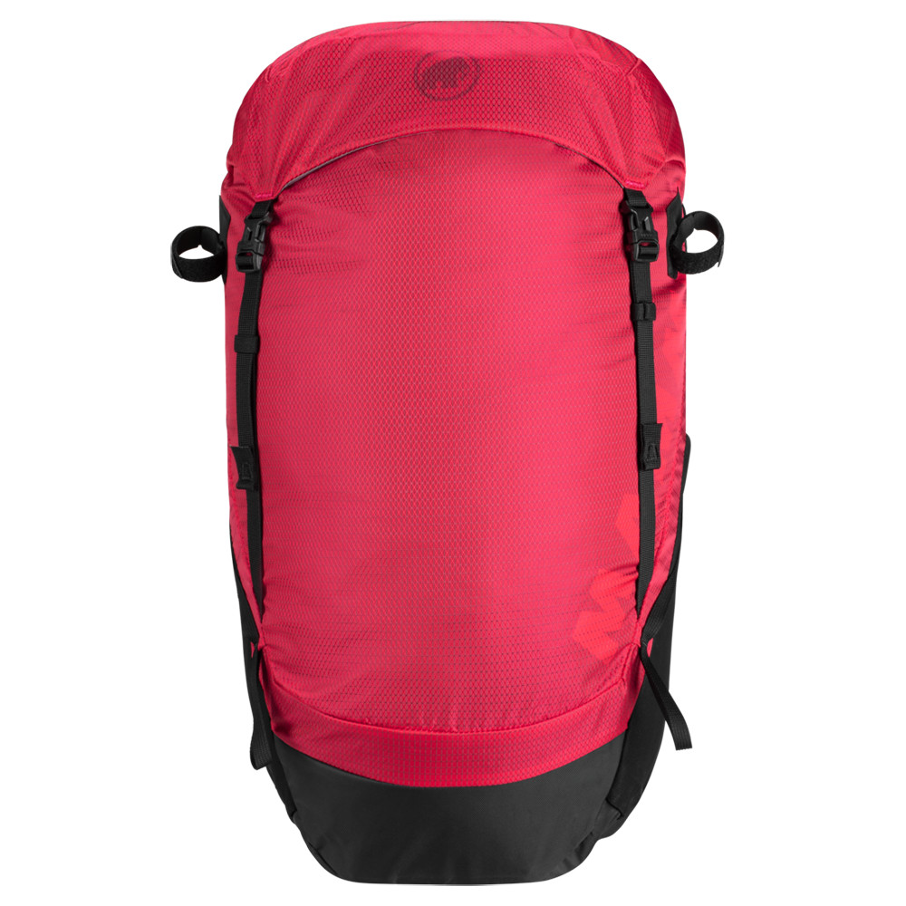 La poche principale offre beaucoup d'espace pour les besoins d'une randonnée d'une journée en été. Il y a également une poche pour le sac d'hydratation, des boucles pour les bâtons ou des poches latérales pour les bouteilles. Sur les bretelles, vous trouverez deux poches pour les collations rapides.