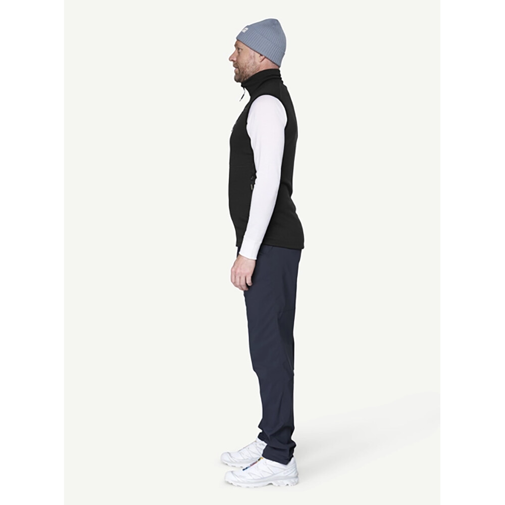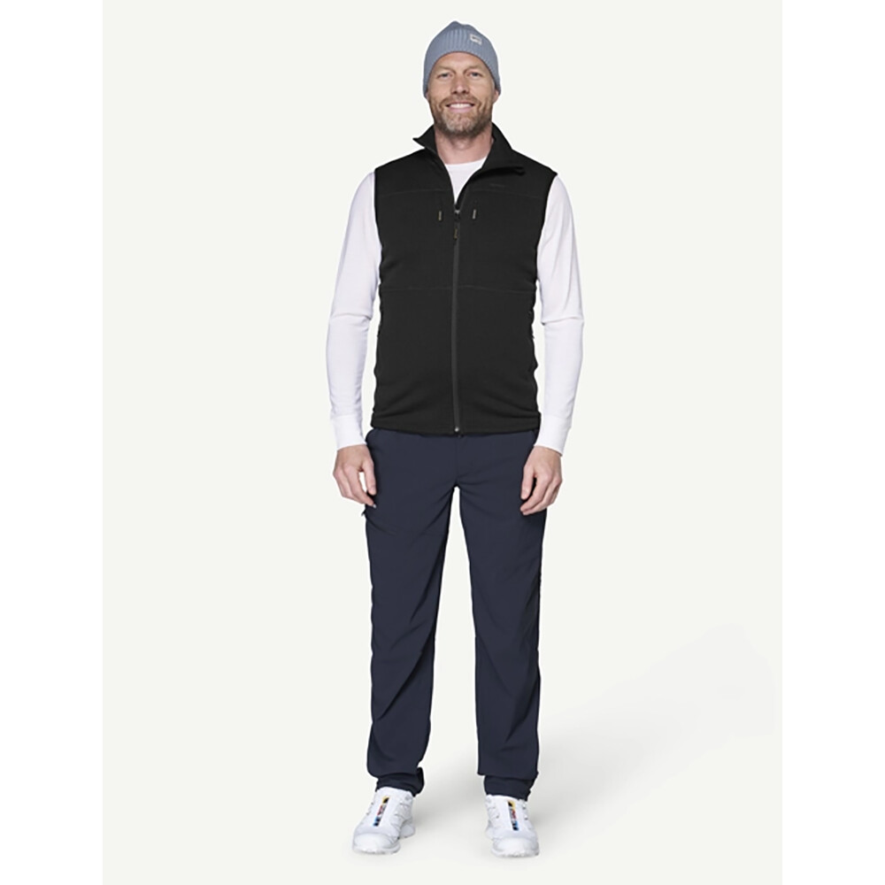 Le gilet est composé à 100 % de laine mérinos et pèse 310 grammes. Le gilet est très respirant, chaud et résistant aux odeurs. Il vous gardera au chaud même lorsqu'il est mouillé. Le col montant protège le cou du froid. L'ourlet inférieur est complété par un cordon de serrage pour un ajustement parfait. Le gilet dispose de nombreuses poches pour ranger des objets de valeur ou des petits en-cas.