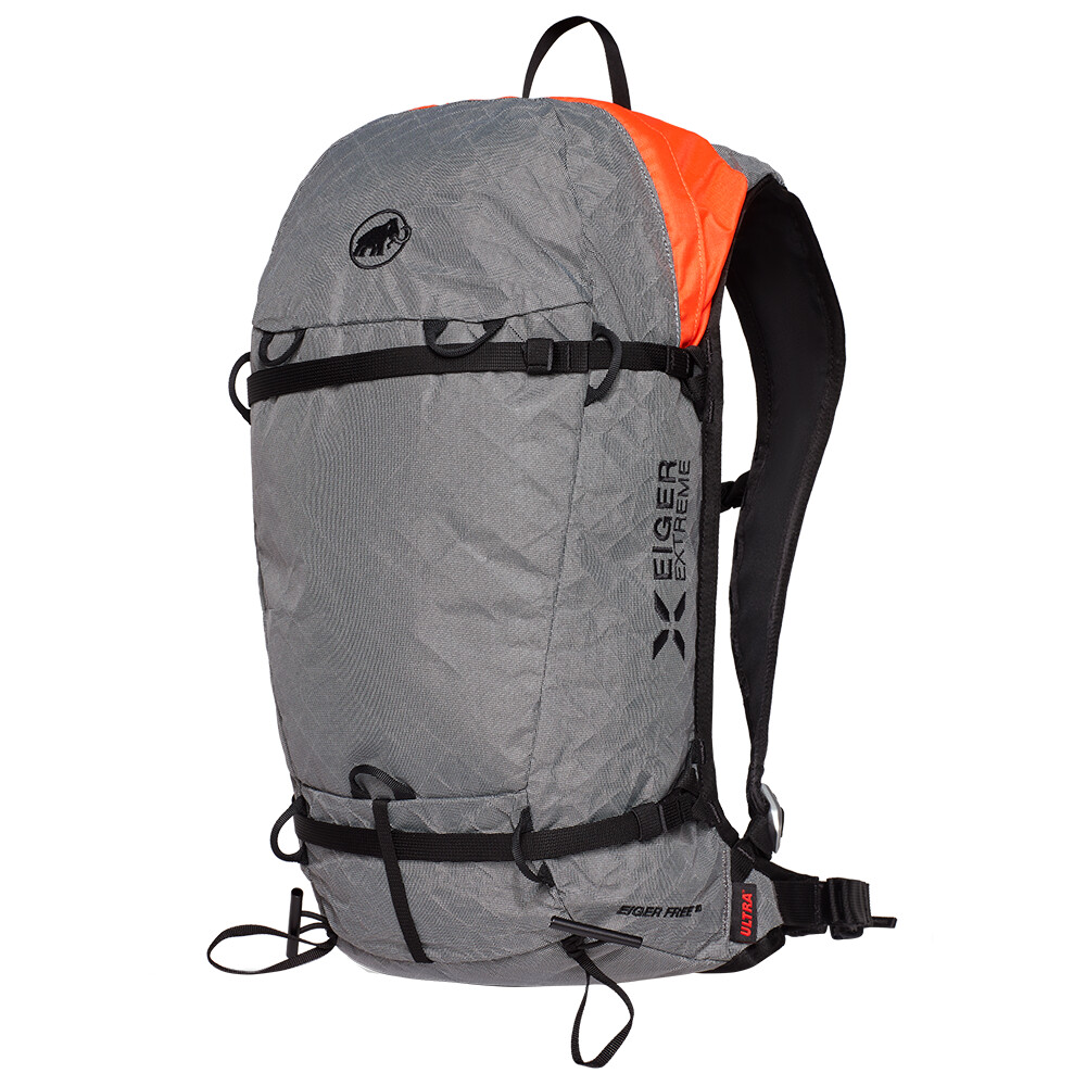 L'Eiger Free 20 de Mammut est un sac à dos de ski incluant un airbag avalanche pesant seulement 1500g. Il est fabriqué en tissu ULTRA™ ultra-léger mais très résistant. Le tout nouveau système Eiger Hook permet d'ajuster les bretelles pour transporter différents équipements (skis, snowboard, corde, bâtons, piolets...) et il fonctionne bien même avec des gants épais. Ce sac fait partie de la collection premium Eiger Extreme de Mammut, qui propose des équipements techniques pour les conditions exigeantes de la haute montagne. Fabriqué avec des matériaux de haute qualité, l'accent est mis sur la durabilité et la légèreté.