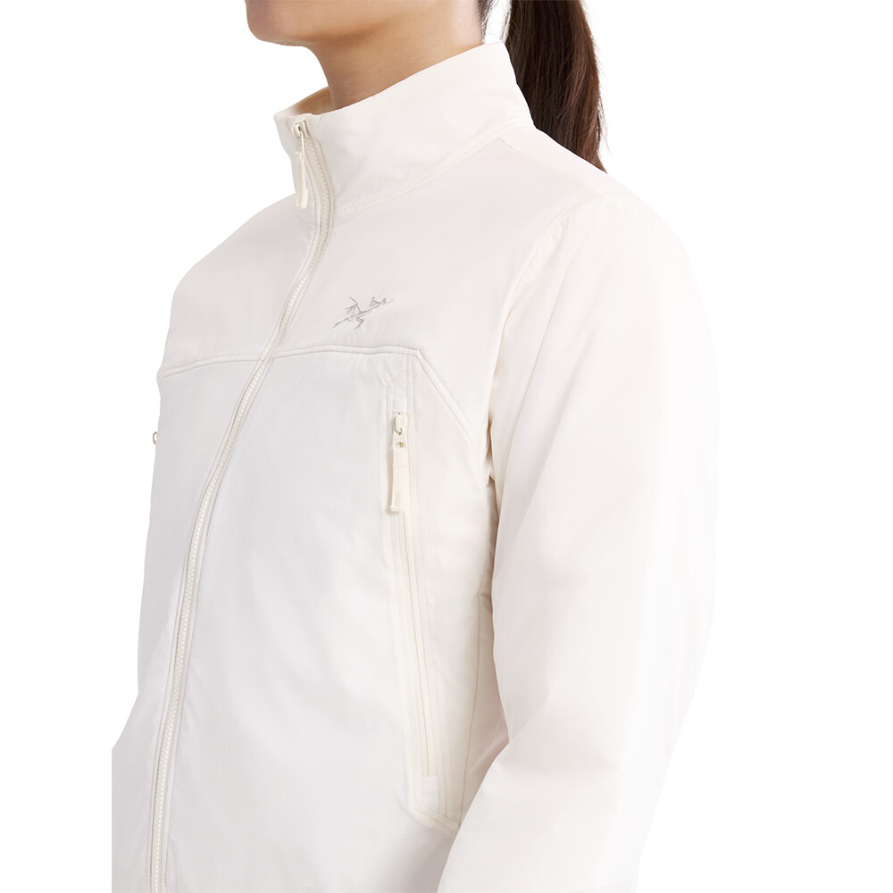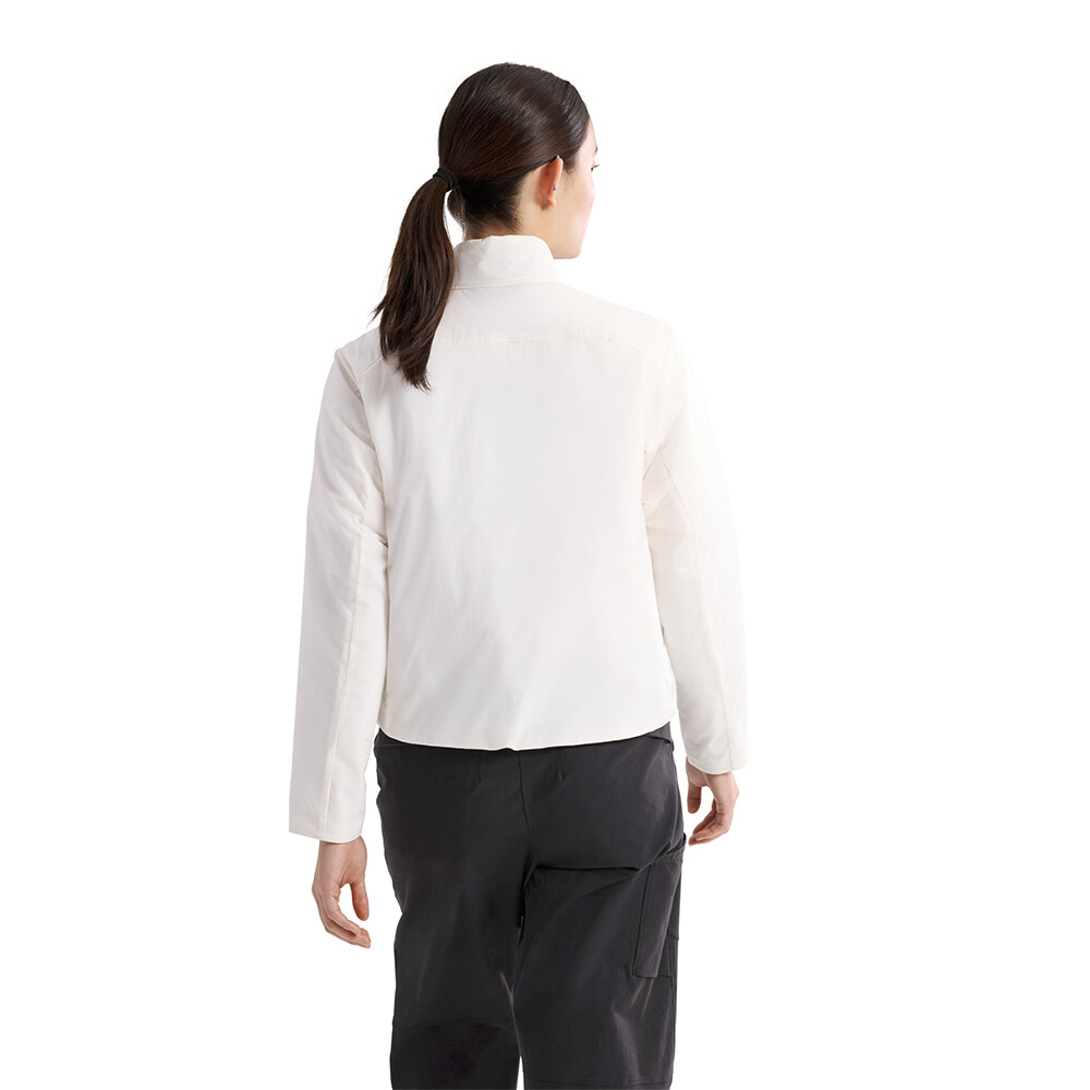 Veste isolée avec capuche pour femme d'Arc'teryx. Le rembourrage synthétique chaud est complété par une matière polaire extensible sur les côtés pour favoriser une meilleure respirabilité.