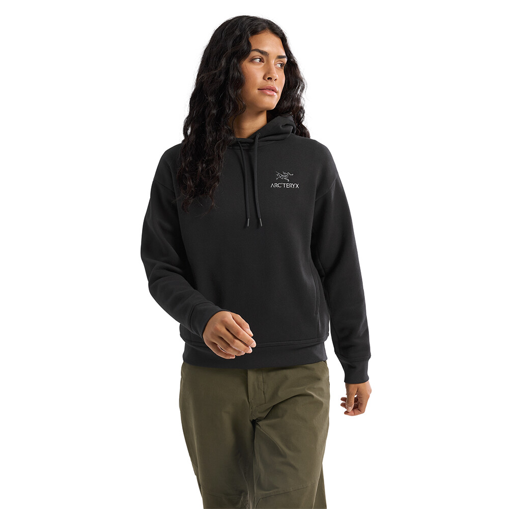 Sweat à capuche chaud Emblem Fleece pour femme en matière plus épaisse d'Arc'teryx pour une utilisation tout au long de l'année.