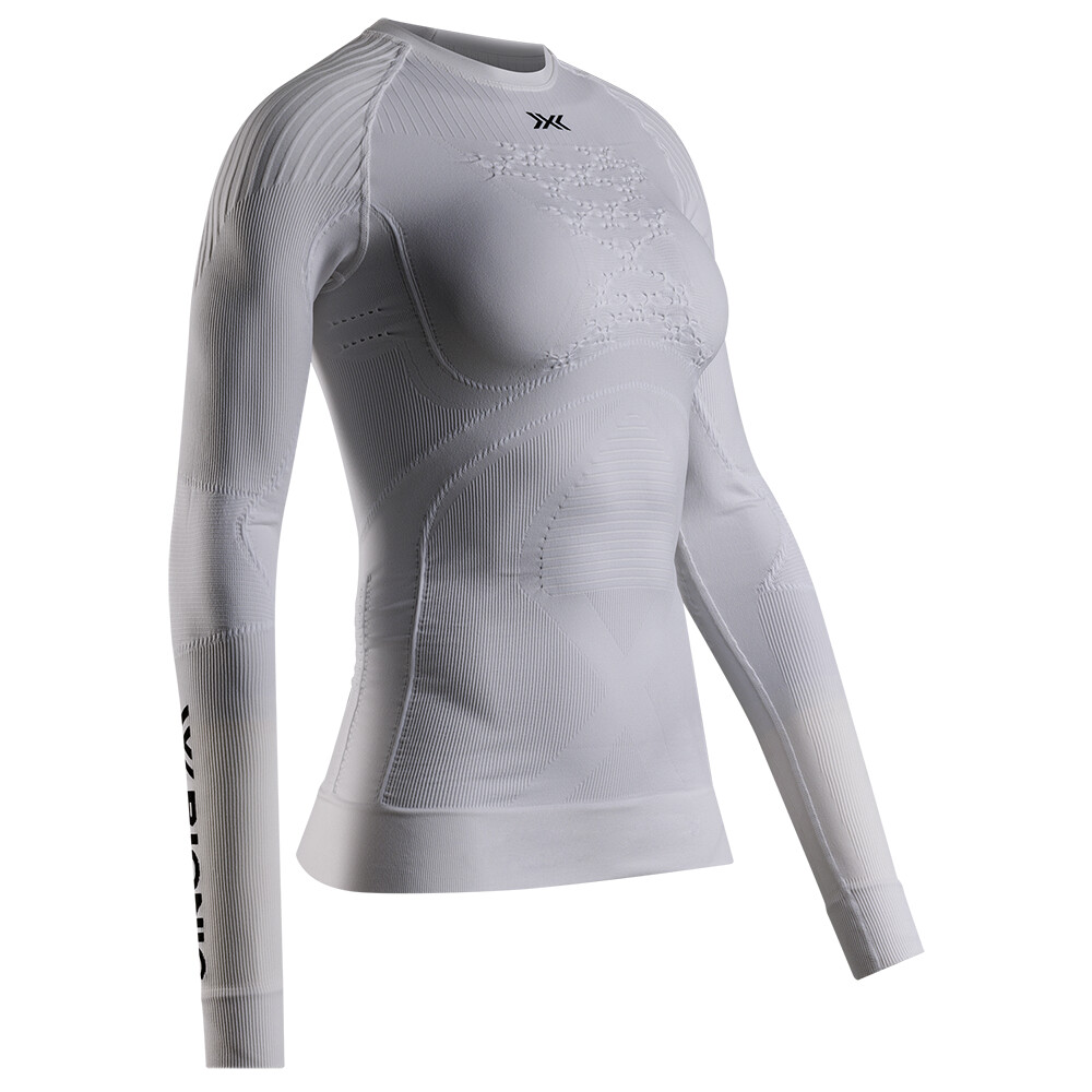 T-shirt fonctionnel X-Bionic pour femme en matériau haute compression et coupe ergonomique. Le modèle idéal pour les conditions de froid extrême afin de maintenir une température corporelle optimale. Le système breveté 3D Bionic Sphere® sur la poitrine et le dos rafraîchit lorsque vous transpirez et réchauffe lorsqu'il fait froid. La compression permet un meilleur travail musculaire, réduit les tremblements musculaires et favorise une meilleure circulation sanguine.