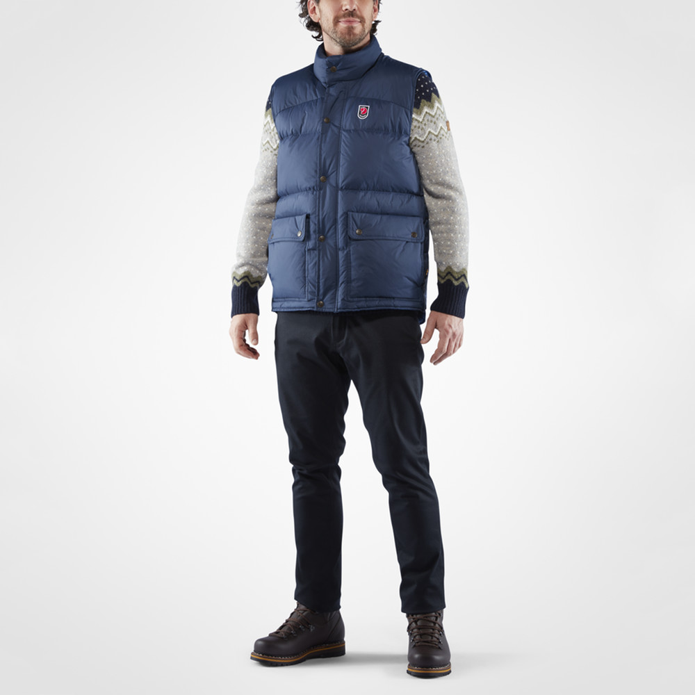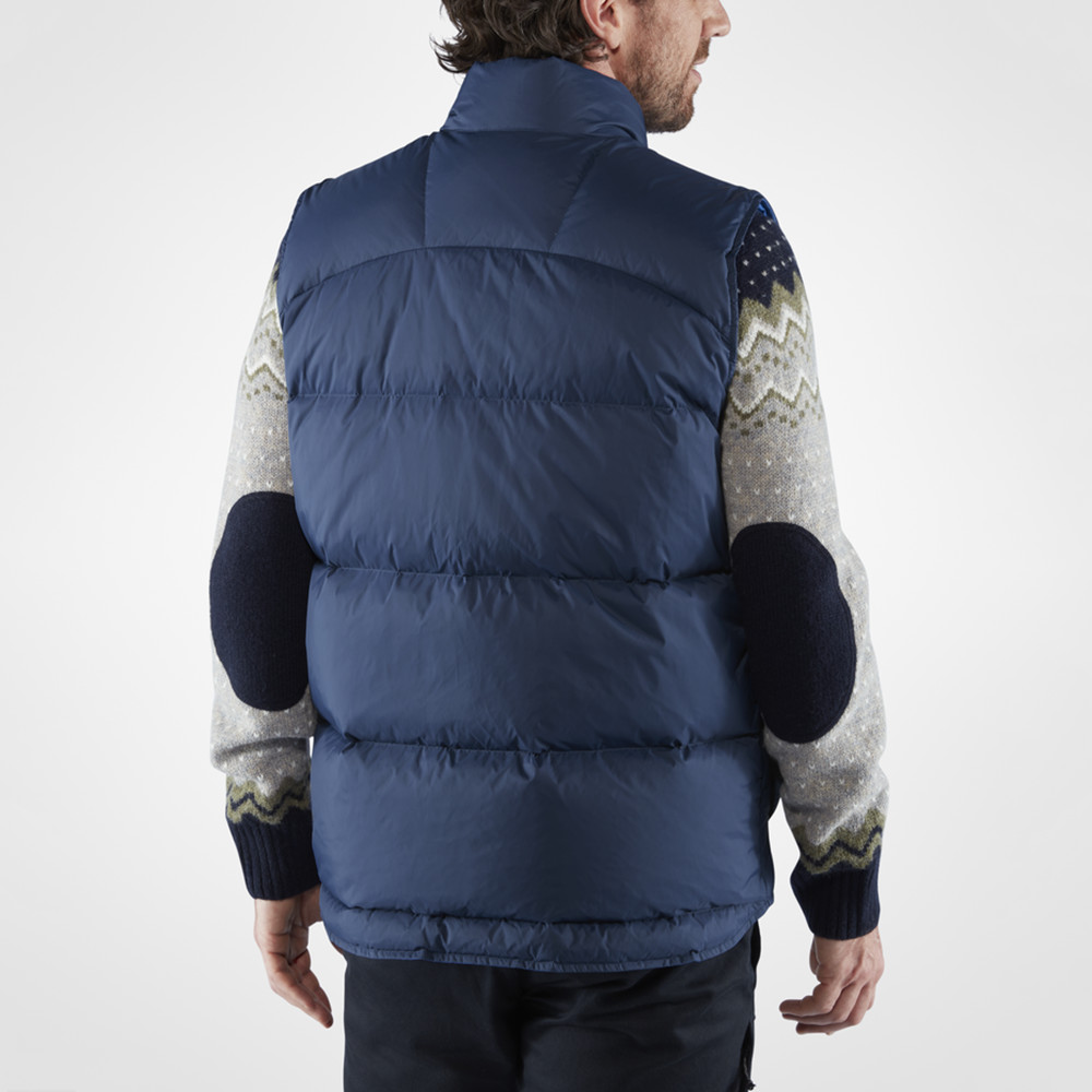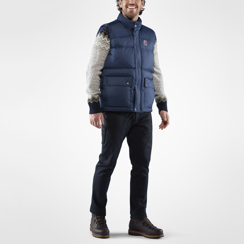 La veste en duvet pour hommes de Fjällräven convient à une utilisation quotidienne ou à diverses activités sportives dans des conditions plus froides. Deux poches pour les mains et une poche poitrine avec fermeture à bouton.