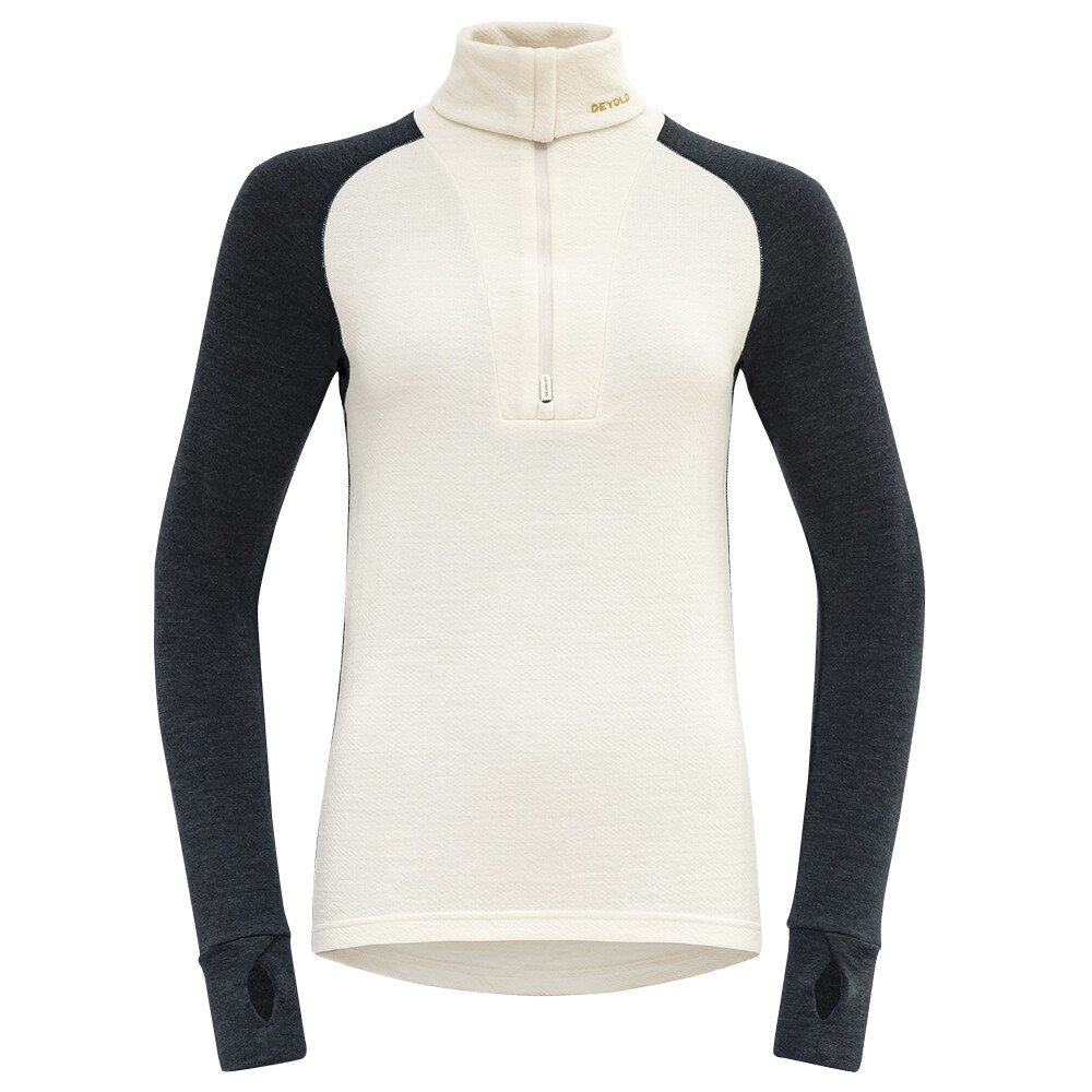 Pull Expedition Merino Silk Zip pour femme de la société norvégienne Devold avec fonction Aquaduct.