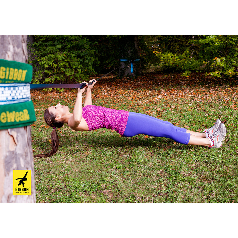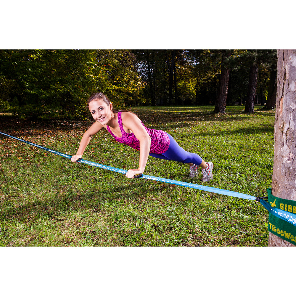 Ligne de freestyle avec sangle dynamique de 12,5 m de long avec impression antidérapante. Idéale non seulement pour marcher, mais aussi pour faire des figures, des sauts et des flips. Jeu de slackline Gibbon pour les plus exigeants.