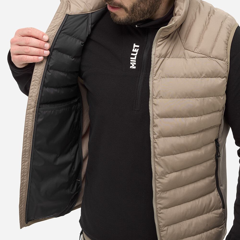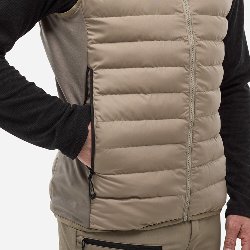 Ce gilet est doté d'une isolation en duvet synthétique de REPREVE®, un fabricant spécialisé dans les fibres textiles 100 % recyclées. Cette isolation chaude et écologique est remplacée sur les côtés par un panneau en polaire extensible parfaitement respirant et offrant un confort optimal pendant l'activité.