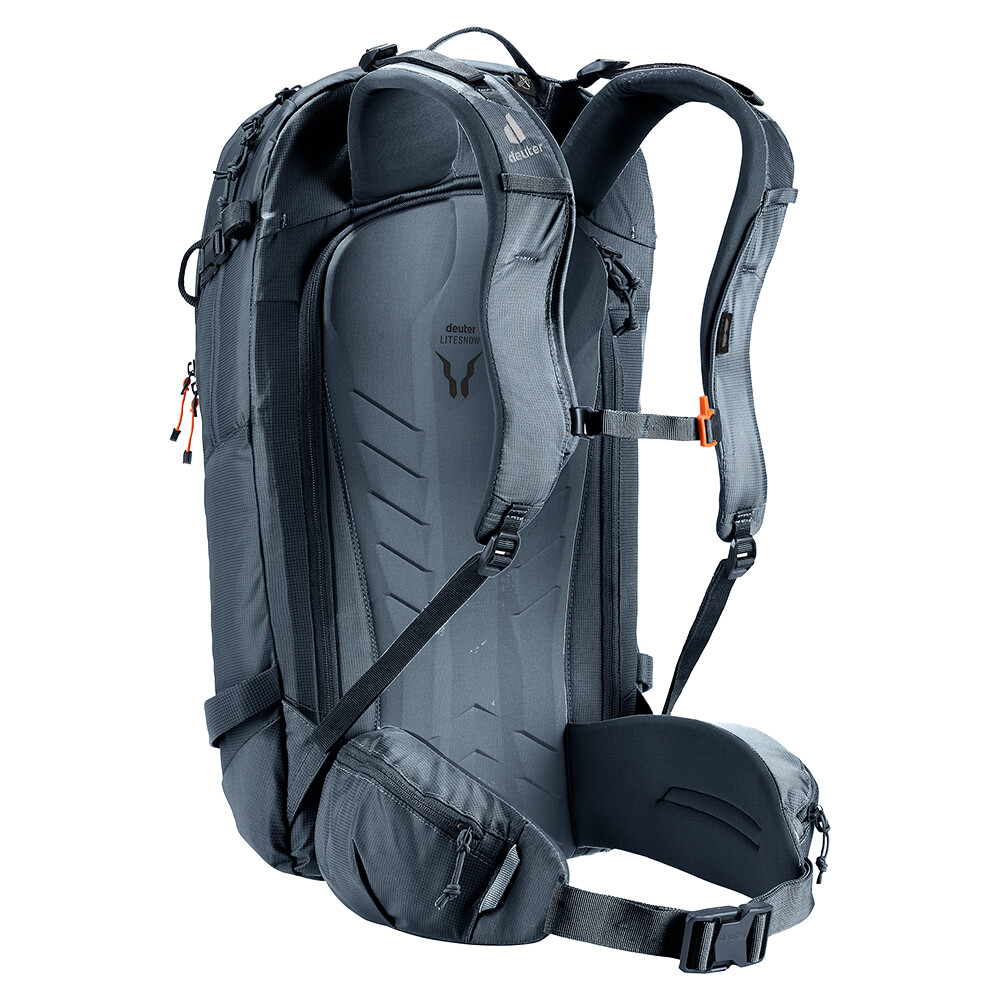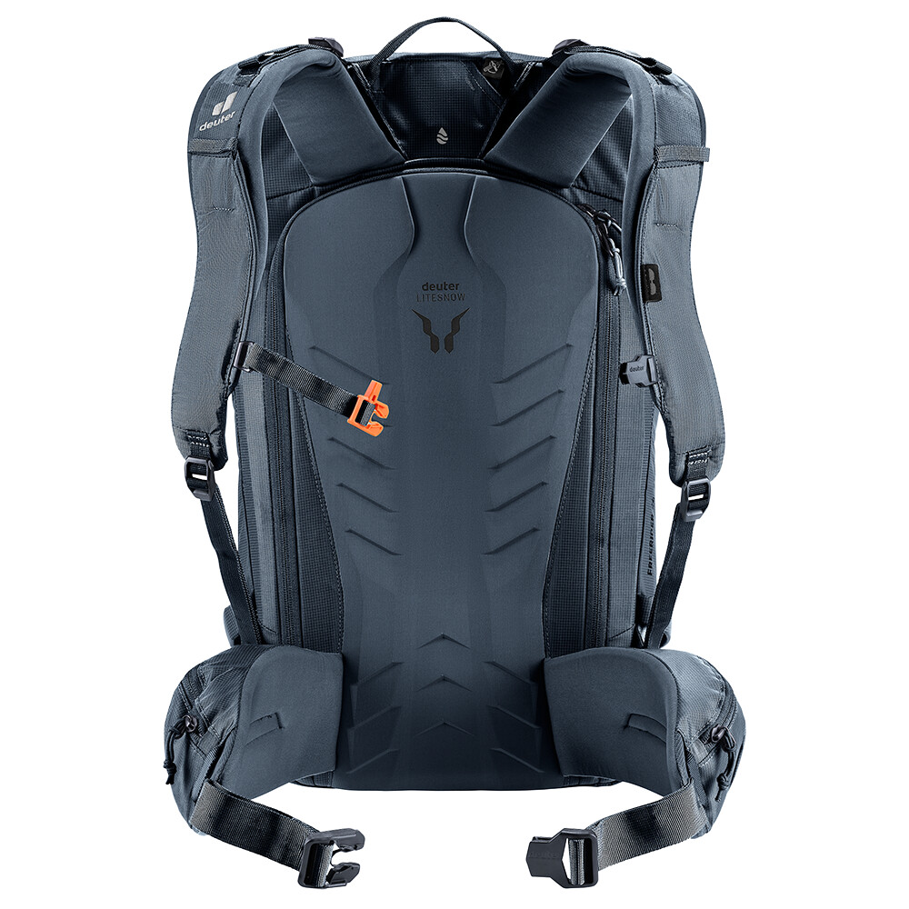 Le système dorsal LiteSnow de Deuter est ultraléger, extrêmement confortable et imperméable. Le rembourrage du dos a une forme spéciale avec des espaces entre la mousse EVA et le matériau Spandex. De cette façon, la neige que vous ramassez dans la descente ne reste pas sur votre dos, le matériau n'absorbe pas l'humidité et assure un confort de portage tout au long de la journée. Bien entendu, les bretelles sont matelassées et les ceintures de poitrine et de taille sont réglables. De plus, la boucle de la sangle de poitrine peut être actionnée d'une seule main, même avec des gants d'hiver épais.