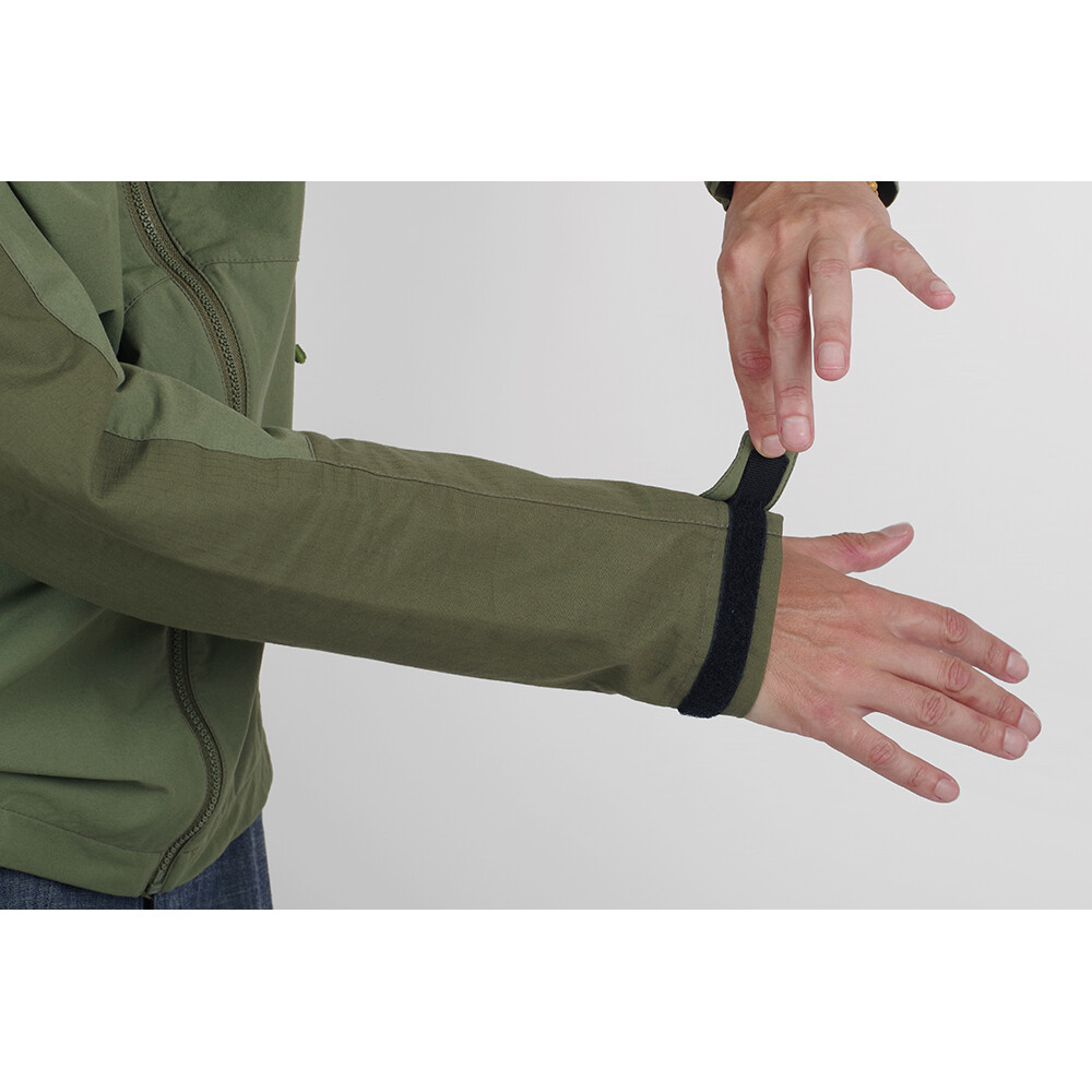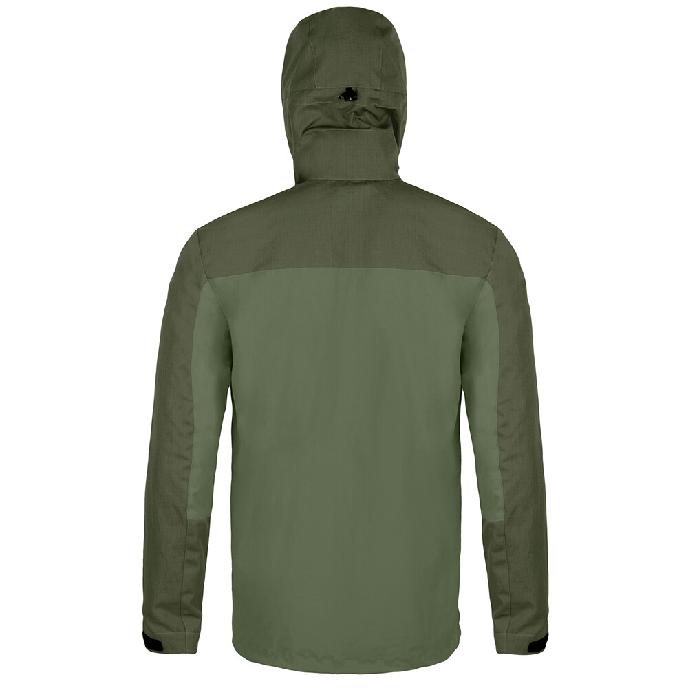 Veste imperméable et coupe-vent pour hommes, avec capuche réglable pour protéger de la pluie. Une ventilation zippée sous les bras permet de réguler la température lors d'activités plus exigeantes. Les poignets des manches sont réglables par velcro.