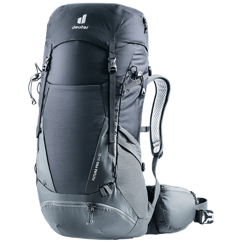 Explorez les grands espaces avec le sac à dos de randonnée pour femmes Futura Pro 34 SL de deuter, pour que votre dos ne se sente pas comme un étang après quelques pas. Le système dorsal unique Aircomfort avec filet s'occupera de votre confort estival. Les bretelles s'adaptent à votre dos grâce au système de suspension ActiveFit. Une ceinture de hanches mobile permet de maintenir le sac dans l'axe de votre dos lorsque vous marchez en traversée ou en montée.
