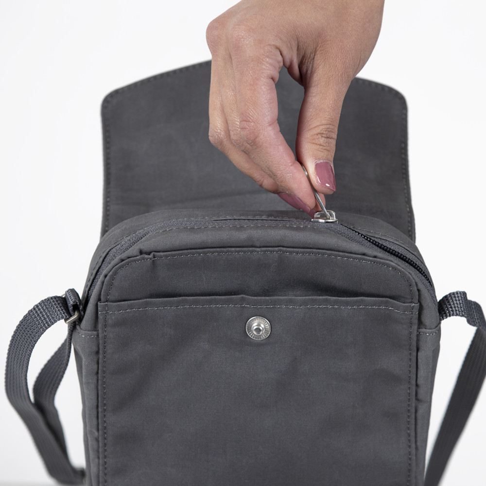 Le Greenland Pocket est doté d'un couvercle zippé, d'une sangle réglable et d'une poche interne pour votre téléphone ou votre petite tablette.