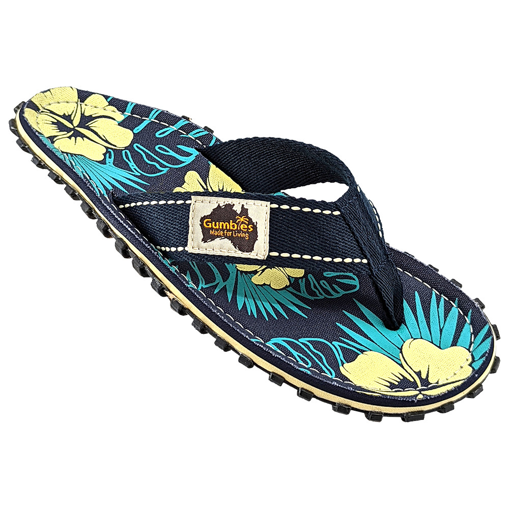 Les tongs Gumbies Islander Blue Hibiscus sont des tongs élégantes, écologiques et tendance en provenance d'Australie. Elles ont été développées avec une passion pour le plein air, les voyages et l'indépendance. Elles offrent la liberté d'une chaussure minimaliste, tout en protégeant le pied grâce à une semelle robuste.