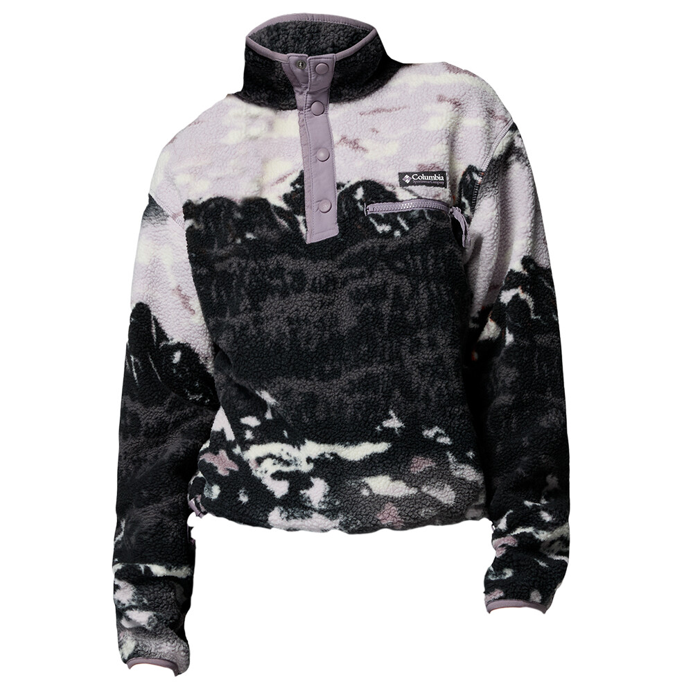 Le sweat-shirt pour femme Helvetia™ II Printed Cropped Half Snap de Columbia, de longueur plus courte, est confectionné dans une polaire douce et confortable qui vous permettra de rester à l'aise en ville comme lorsque vous vous baladez dans la campagne. Il est doté d'une fermeture à bouton-pression courte et d'un cordon de serrage à l'ourlet. Le sweat est imperméable grâce au traitement DWR et ne contient pas de PFAS.
