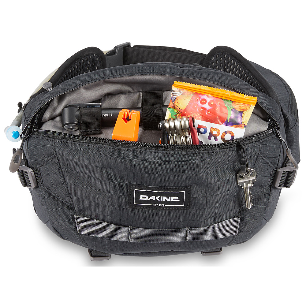 Avec une capacité de stockage comparable à celle des petits sacs à dos, le Hot Laps 5L Dakine est un sac à reins performant doté d'un réservoir Hydrapak® 3D de deux litres et d'un espace supplémentaire pour ranger une variété d'équipements lors de vos randonnées. La nouvelle conception comprend une poche en polaire sur la ceinture rembourrée qui permet de ranger confortablement un téléphone ou des lunettes de soleil. Le compartiment principal offre suffisamment d'espace pour ranger des outils, de la nourriture et du matériel léger. Le panneau dorsal respirant AirFlow empêche la surchauffe du dos pour minimiser la transpiration.