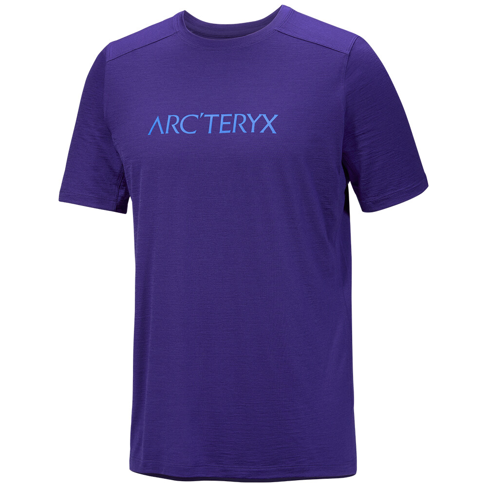 Chemise Ionia Merino Wool Arc'Word Logo SS pour hommes, de la société canadienne Arc'teryx, à porter tous les jours.