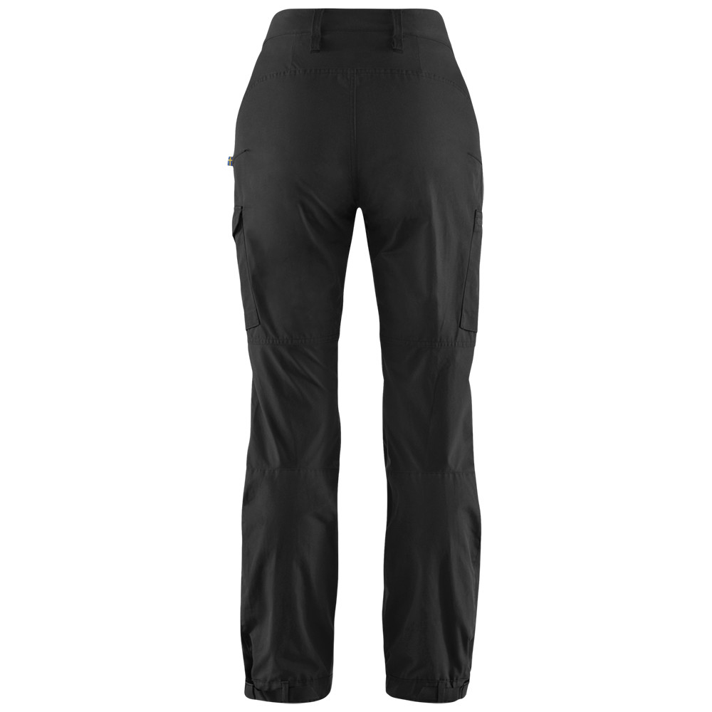 Le Kaipak Trousers Curved Women est un pantalon de trekking durable de la marque suédoise Fjällräven, idéal pour les randonnées à la campagne et les tenues de tous les jours. La coupe anatomique avec panneaux extensibles garantit une grande liberté de mouvement. La matière G-1000® Eco (polyester recyclé/coton bio) résiste au vent et aux pluies légères. Le pantalon est doté de crochets pour bottes et d'une finition solide.