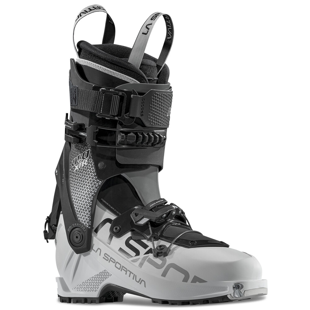 Chaussures de ski stables et légères pour le ski alpinisme. L'articulation de la cheminée a une grande amplitude (jusqu'à 80°), ce qui rend les chaussures très confortables en montée. Grâce aux deux boucles et à la manchette plus agressive, les chaussures sont également efficaces en descente.