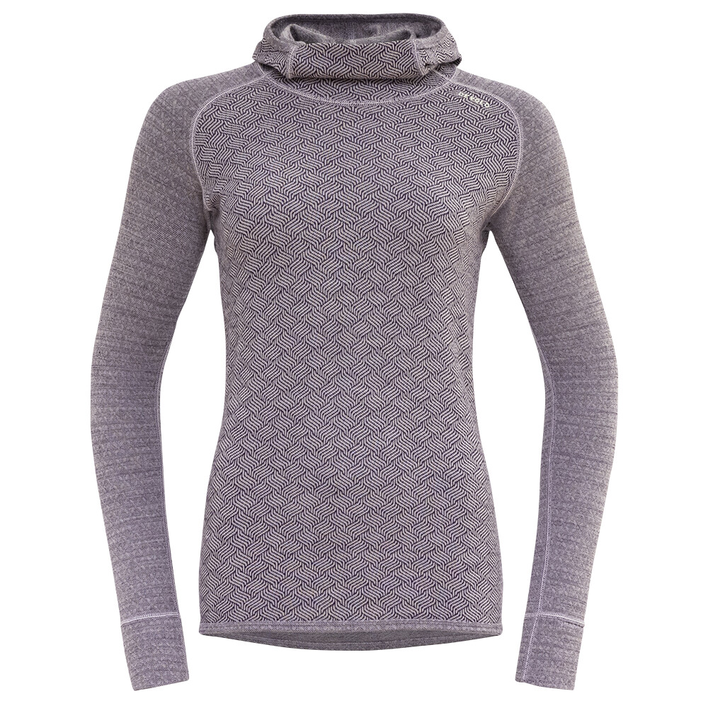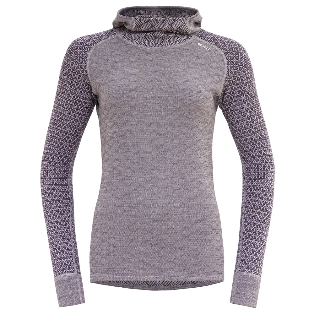 Chemise à capuche réversible pour femme Kvitegga Merino 230 Hoodie de la société norvégienne Devold. Il est composé à 100 % de laine mérinos. Les poches d'air microscopiques de la laine permettent une rétention optimale de la chaleur.
