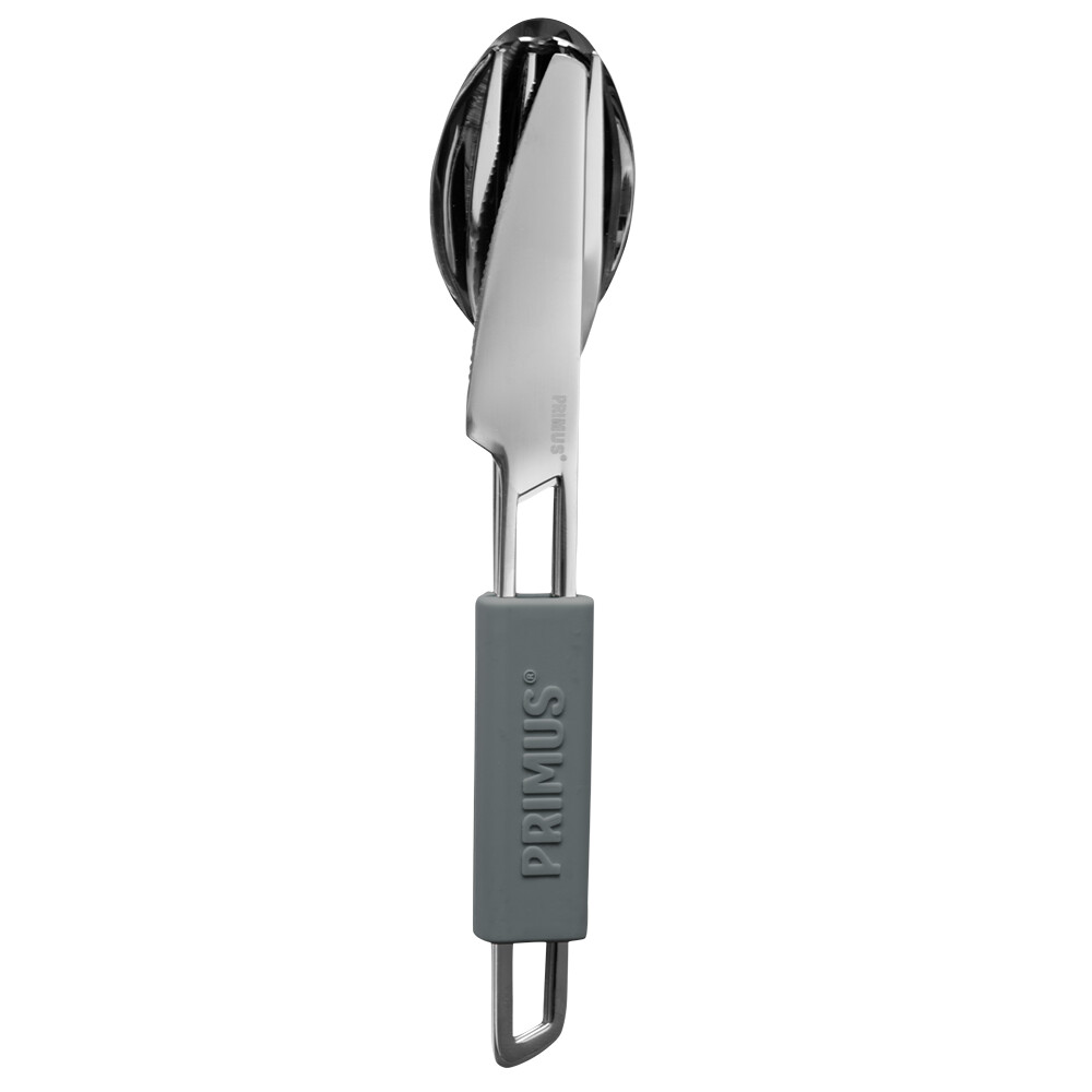Cuillère, fourchette et couteau sous la forme d'un seul couvert.