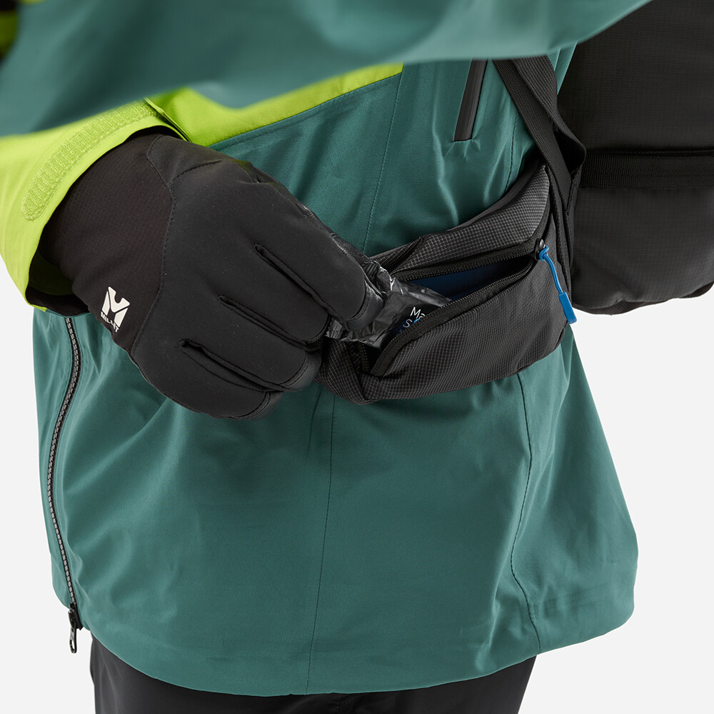 Choisissez un sac à dos confortable de la marque Millet avec de nombreux détails intéressants pour le skialp. Il possède une fermeture à enroulement inhabituelle pour ce type de sac à dos, complétée par une fermeture à glissière latérale sur toute sa longueur, ce qui permet d'accéder rapidement à son matériel où qu'il se trouve dans le sac. Une autre caractéristique intéressante est la poche sur la bretelle, qui peut accueillir votre bouteille de boisson, et la poche sur la ceinture abdominale pour les petits objets que vous voulez garder à portée de main. Dans l'ensemble, le sac a une forme plus étroite, de sorte qu'il repose mieux sur le dos lors de la descente ou de l'ascension du sommet. Bien sûr, il y a une poche séparée pour le matériel d'avalanche (sonde, pelle), la possibilité de porter les skis sur la hanche ou en diagonale, et vous trouverez également des boucles pour les piolets, un porte-casque et des bâtons.