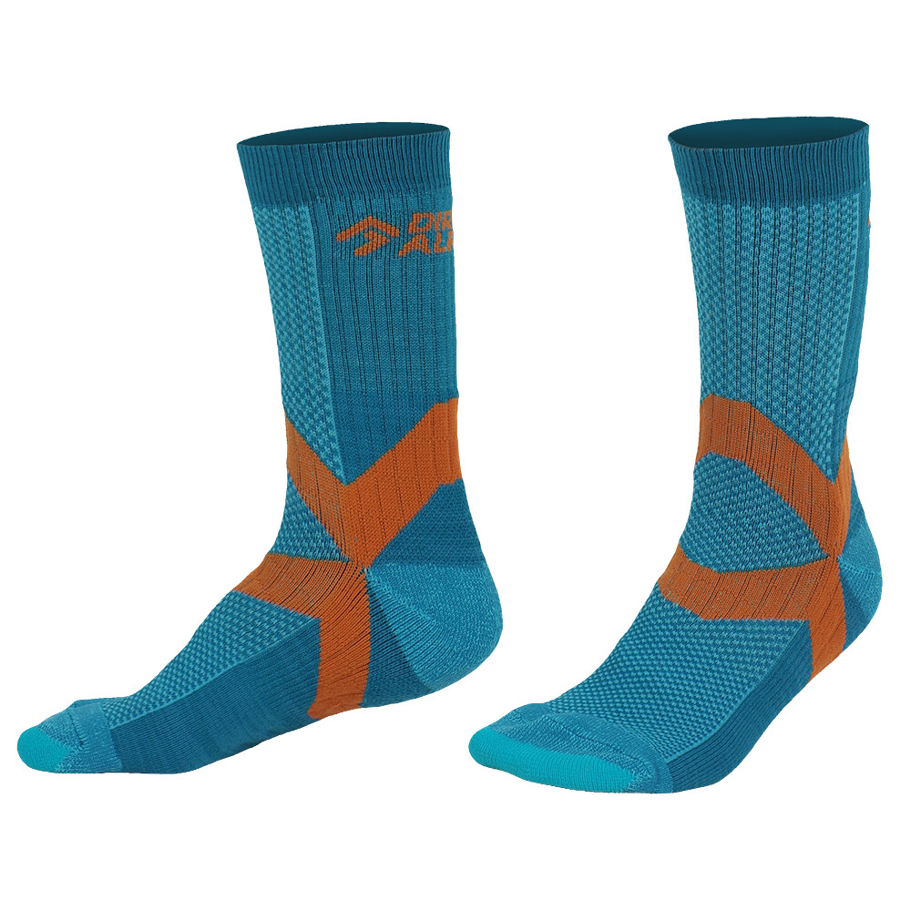 Les chaussettes de sport Malga medium de l'entreprise tchèque Direct Alpine conviennent à un large éventail d'activités. Ces chaussettes sont dotées d'un renfort unique au niveau de la cheville, qui empêche la chaussette de rouler et de se déplacer. La fonctionnalité est renforcée par une proportion de fibre coolmax qui évacue la transpiration, et les renforts au niveau du talon et des orteils empêchent la formation d'ampoules.